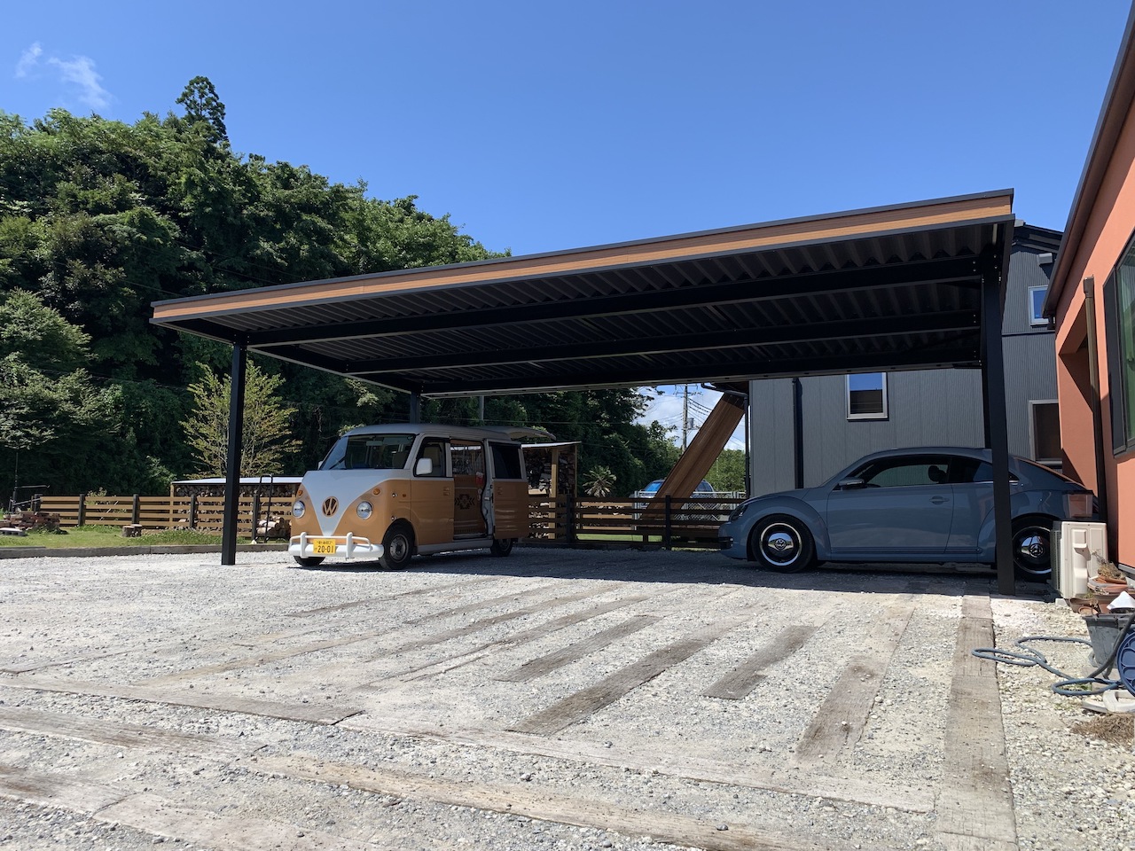 ブルックリンスタイルで、ごっつい骨太なカーポートです。