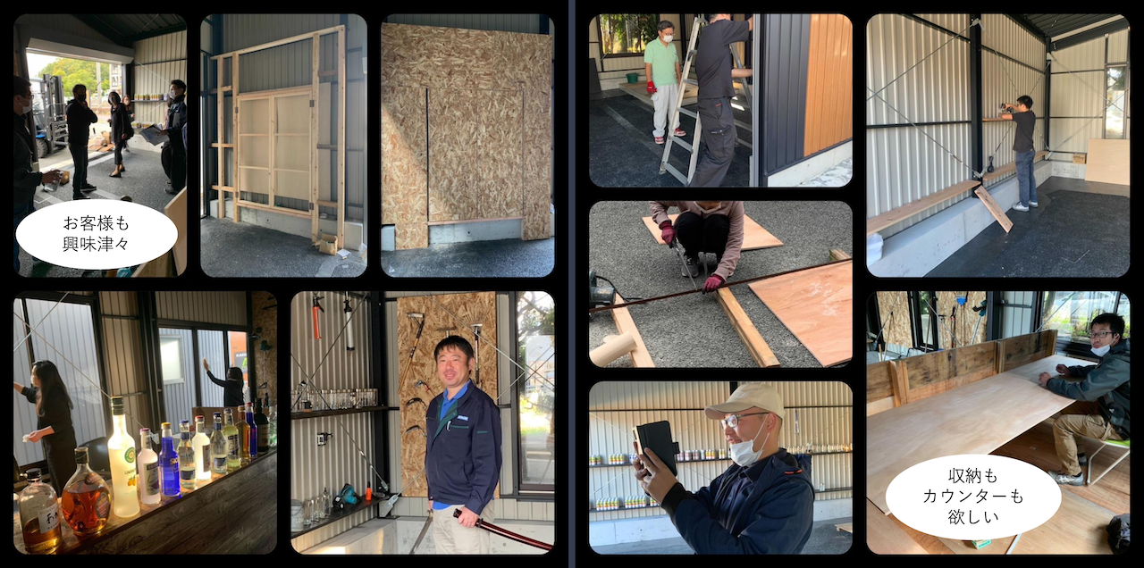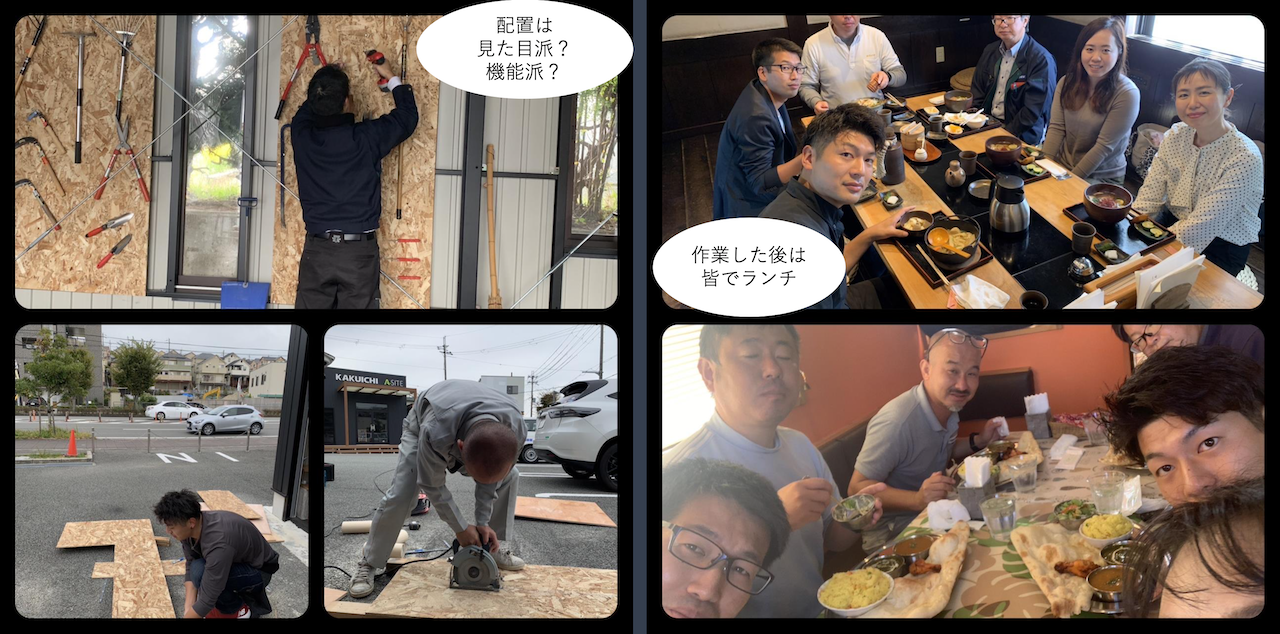 今回、収納もできる男の遊び場ということで、男性陣が中心となってディスプレイを作成しました。