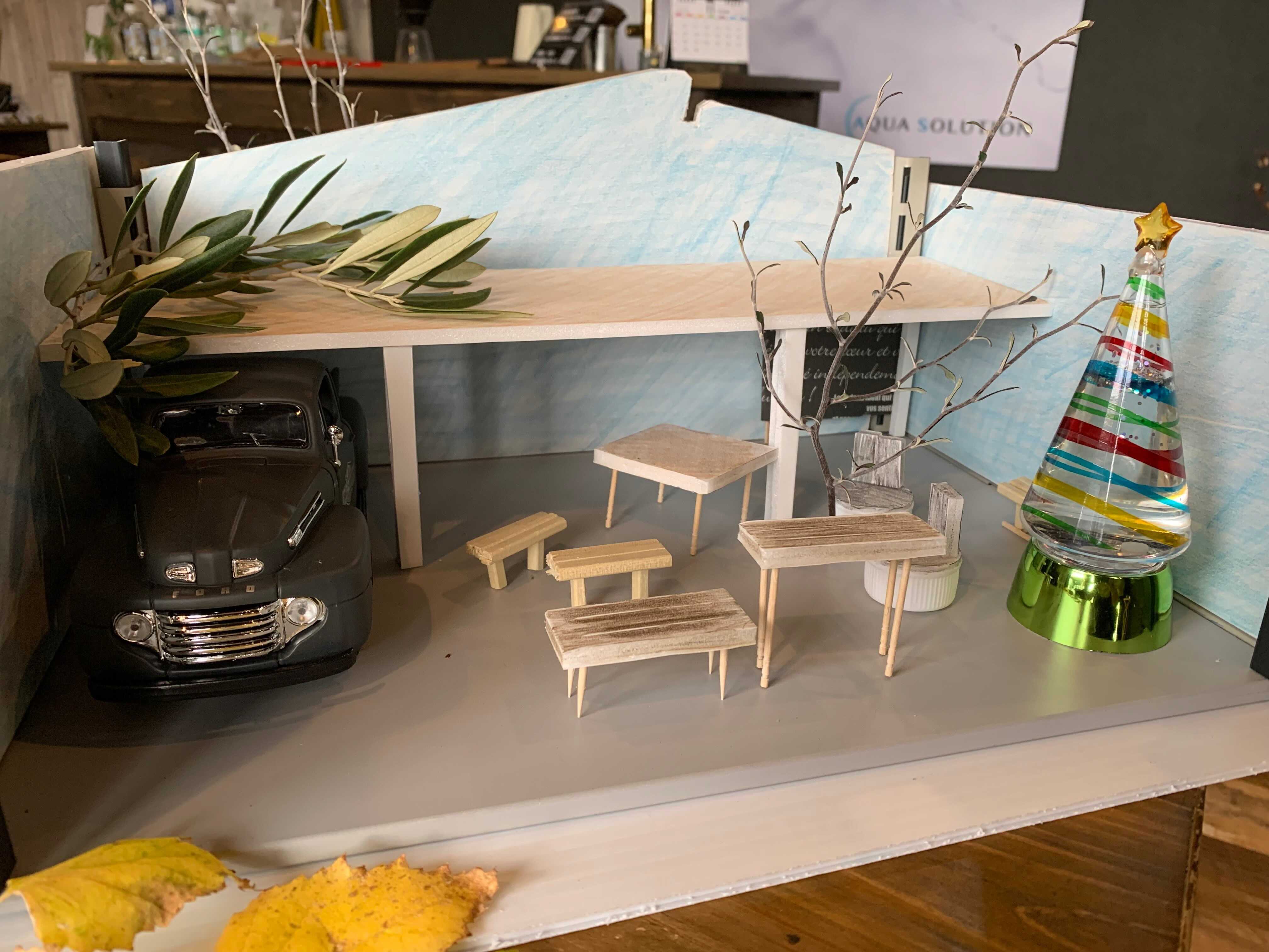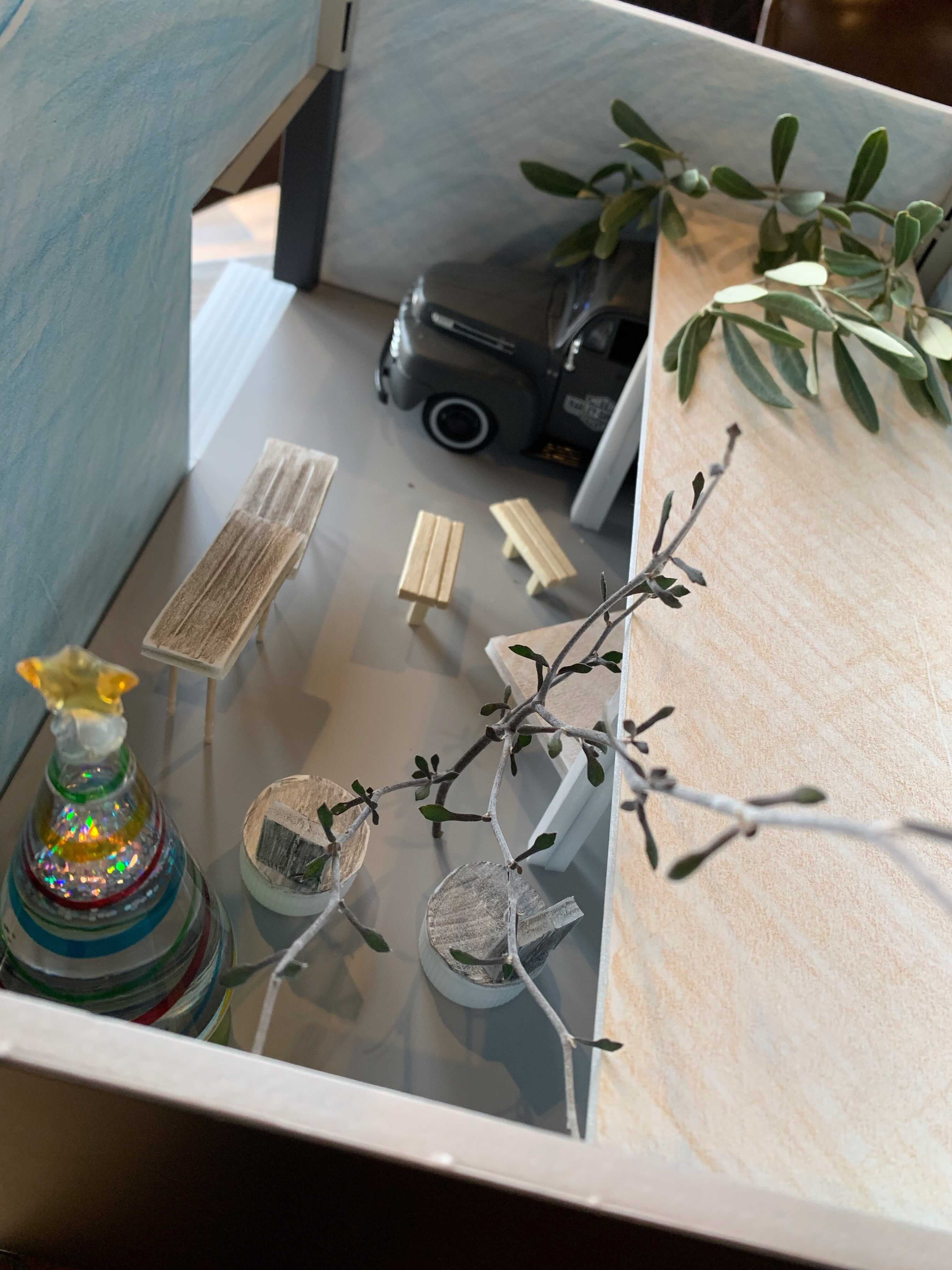 ディスプレー計画では、HHDの模型で外観と内観のコントラストをイメージしながら進めました。