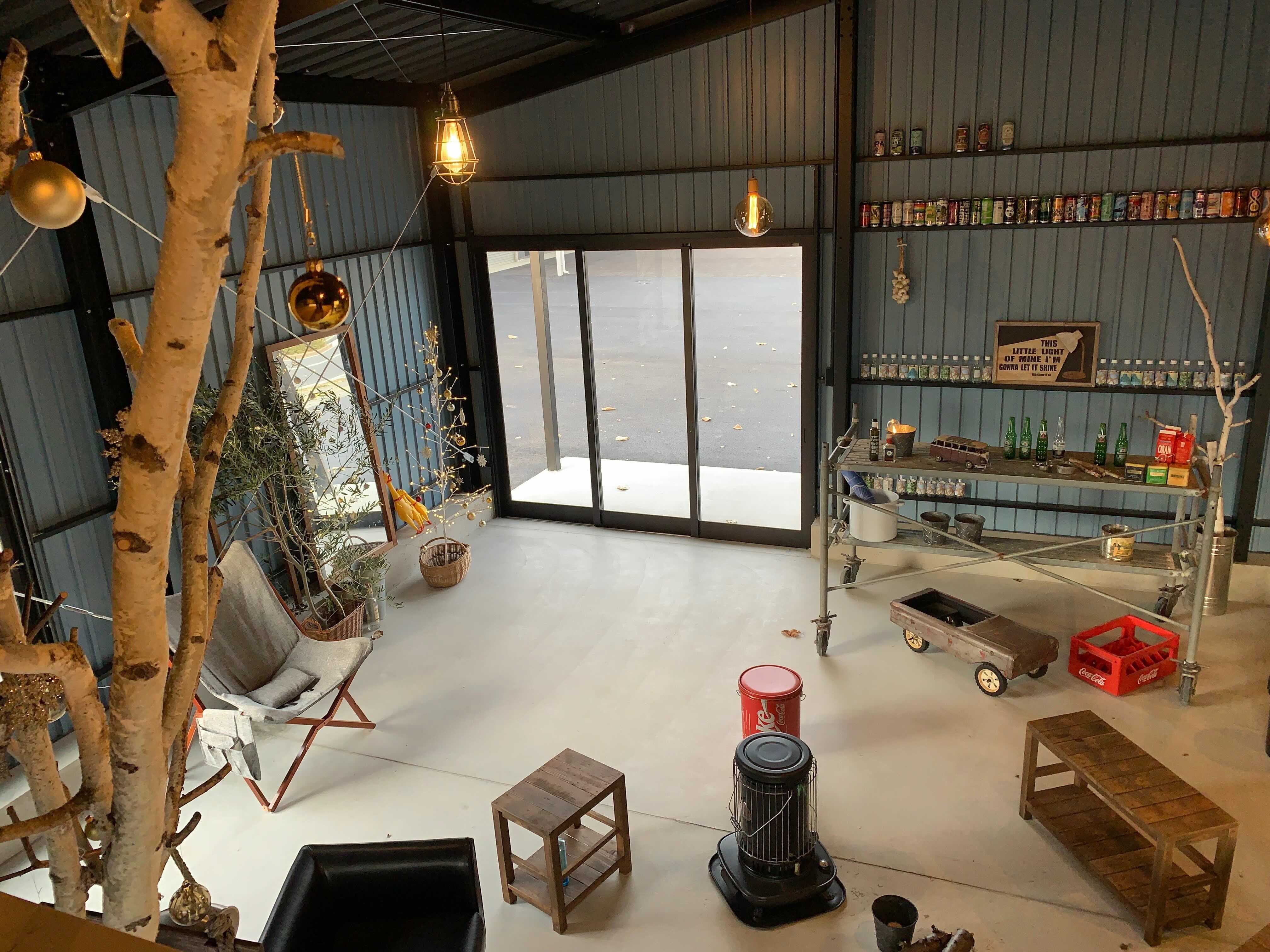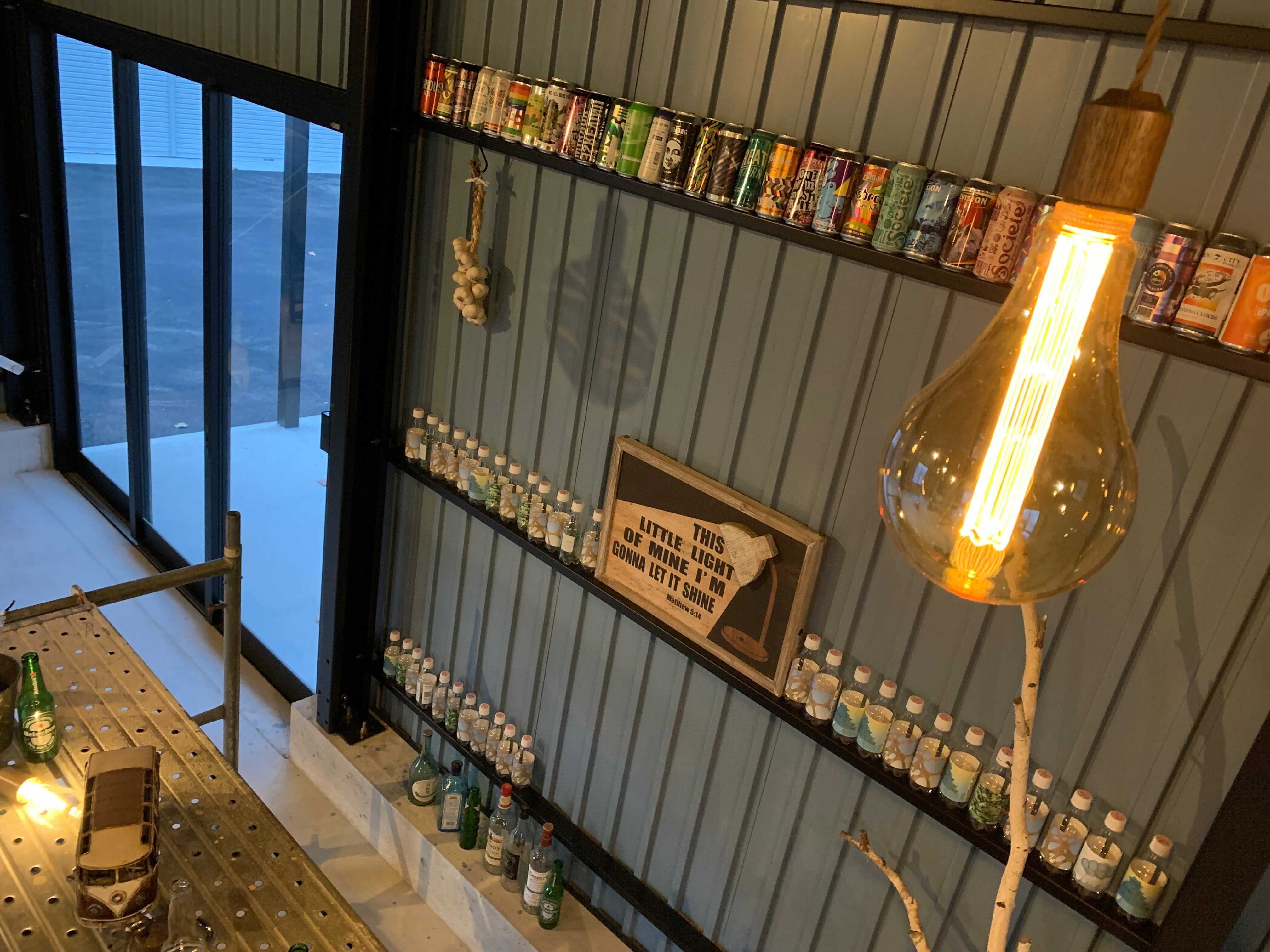 広スペースハウスHHD中の胴縁を使って、空き缶をディスプレー!!