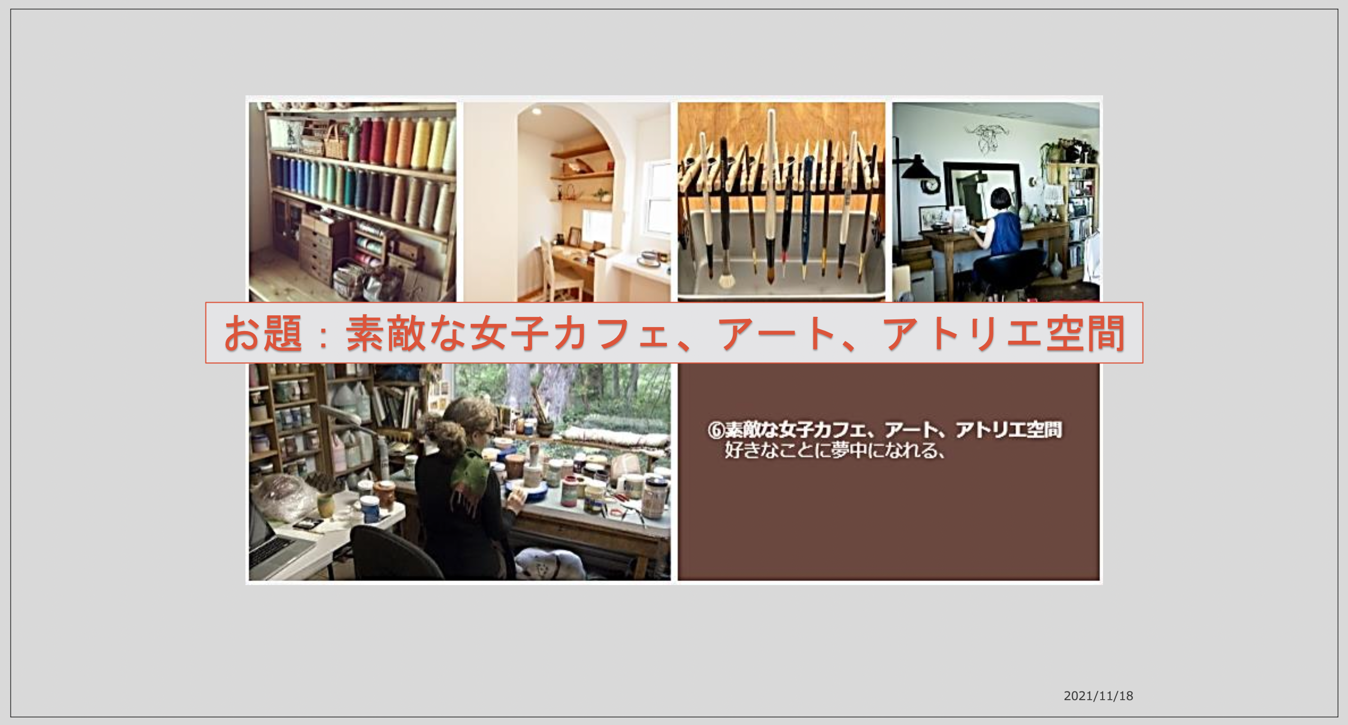 テーマは、女性の素敵な女子カフェ、アートアトリエ空間