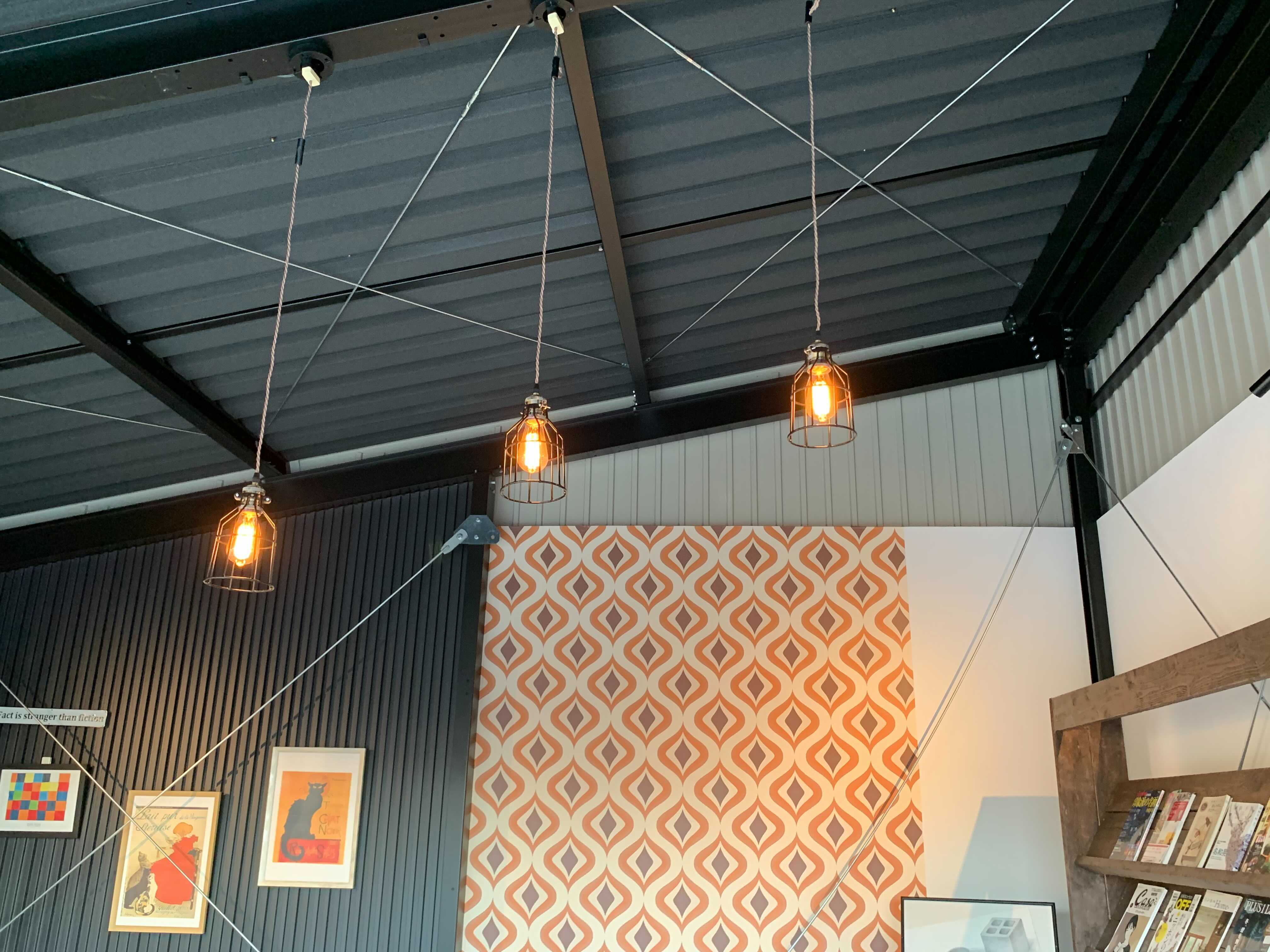 梁から、吊るされた照明もレトロでいい感じですね!!