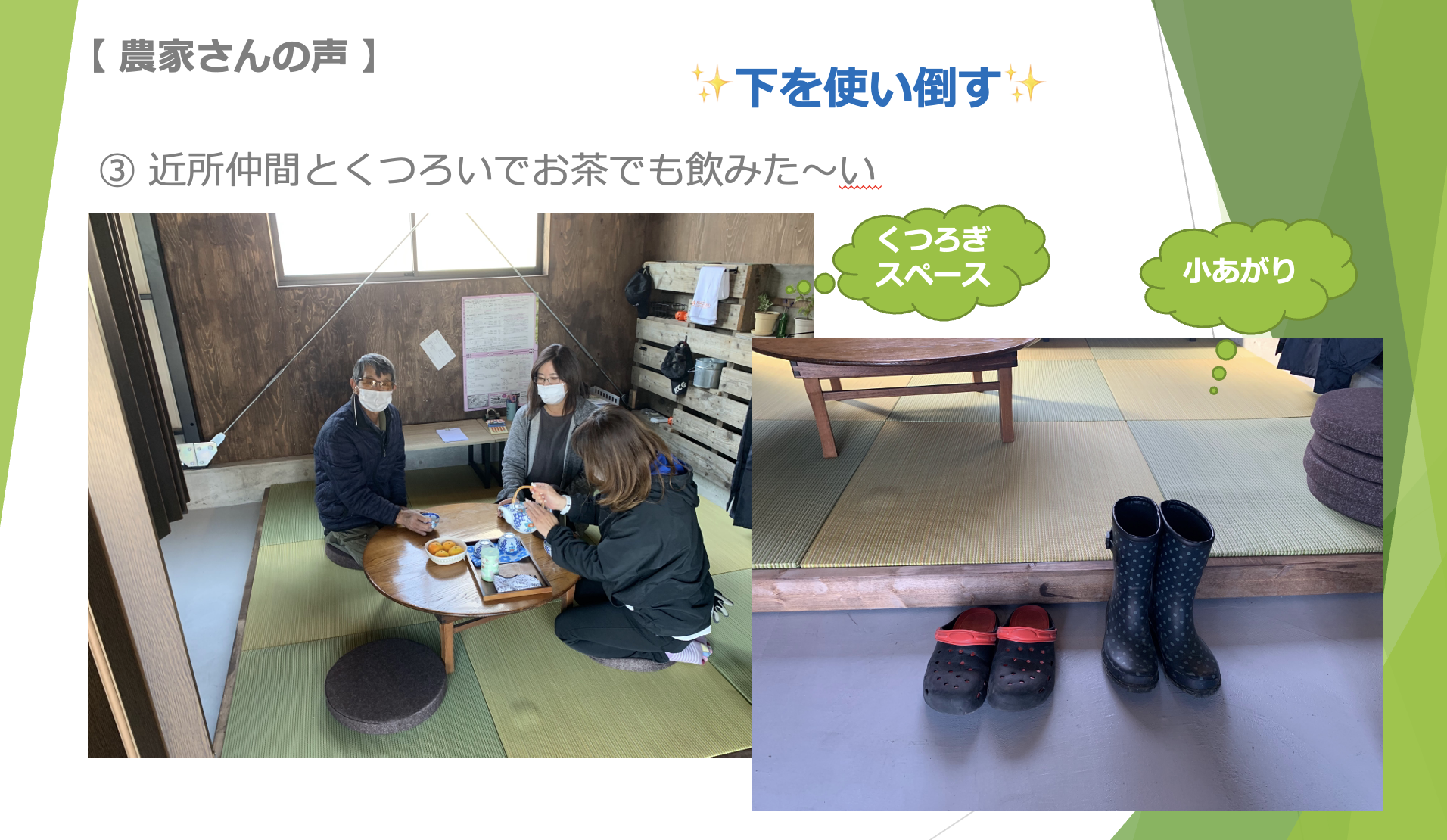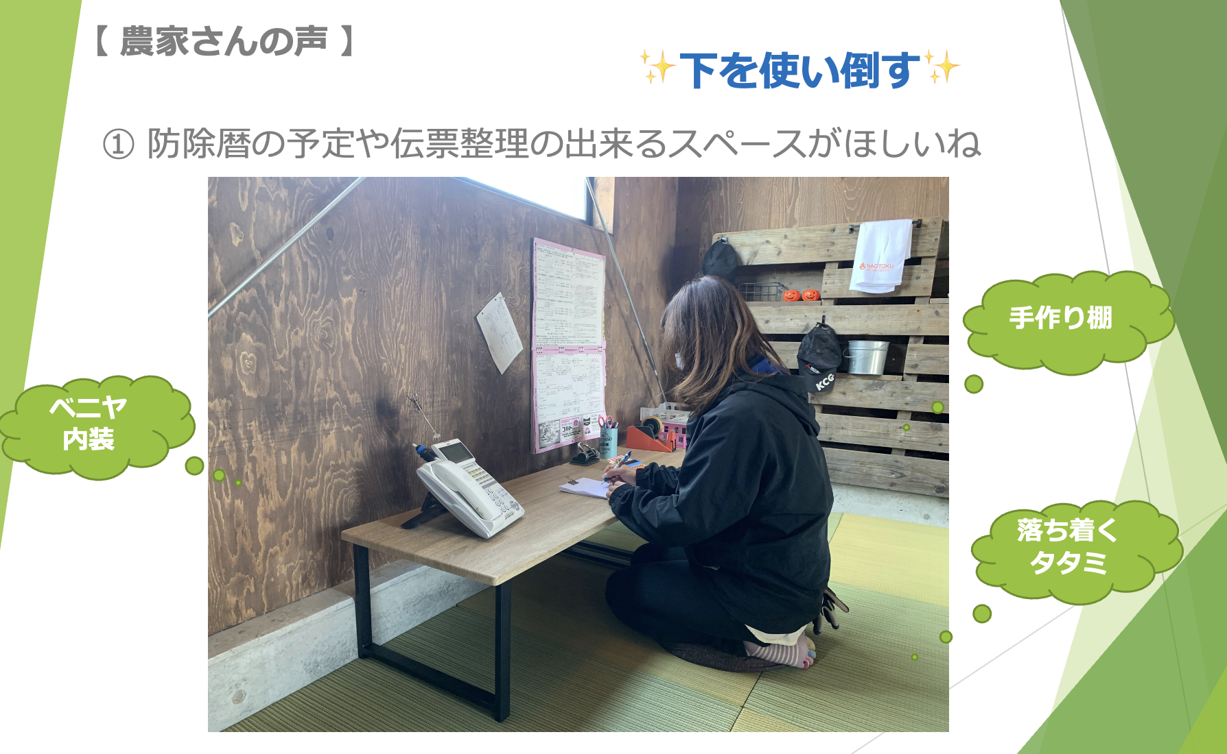 農家さんが出荷伝票やお客様に電話をかけたりする場所が欲しかったのですね!!!