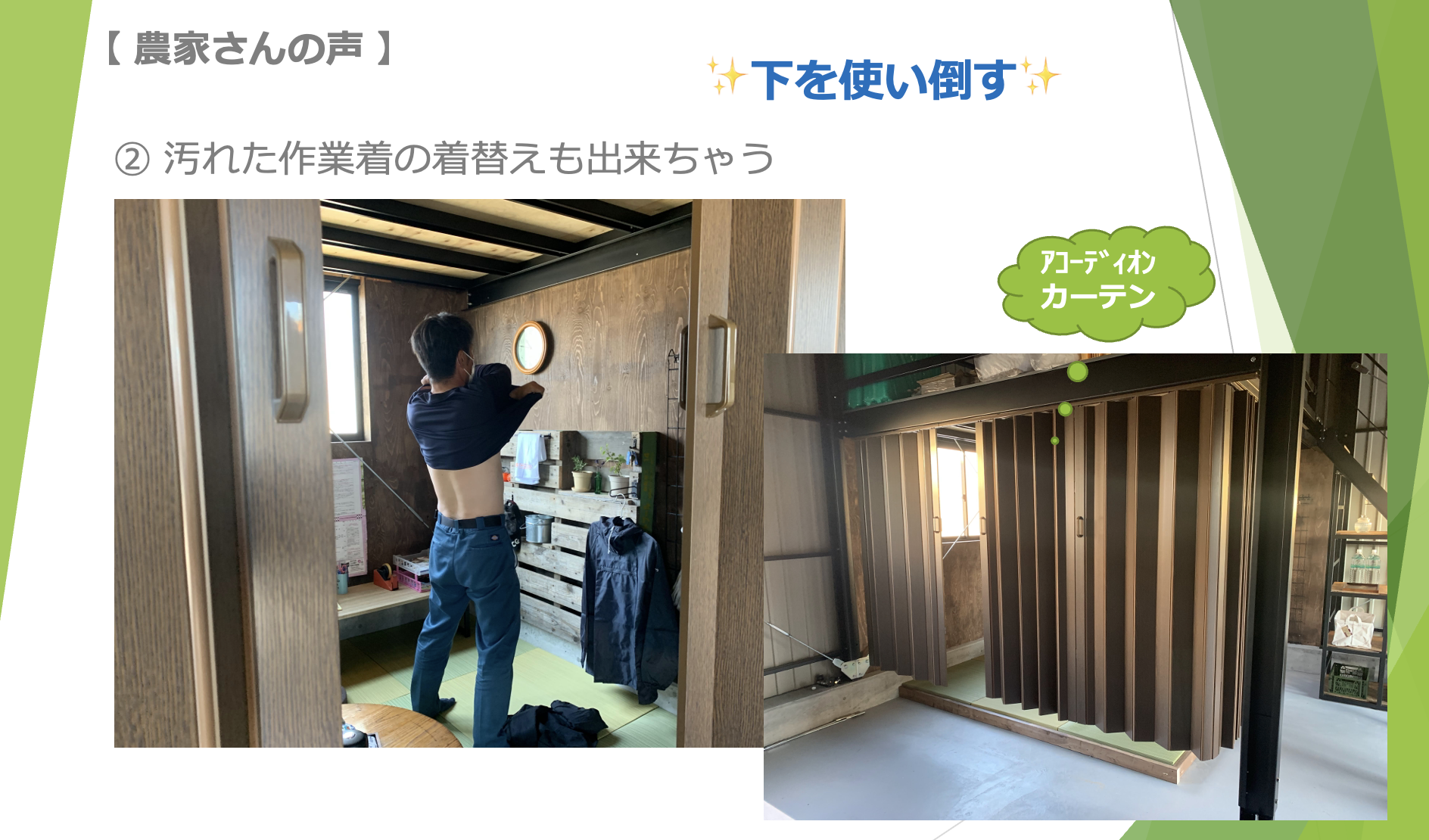 作業着に着替えたり、畑から帰ってきてから、普段着に着替えるスペースが欲しい!!