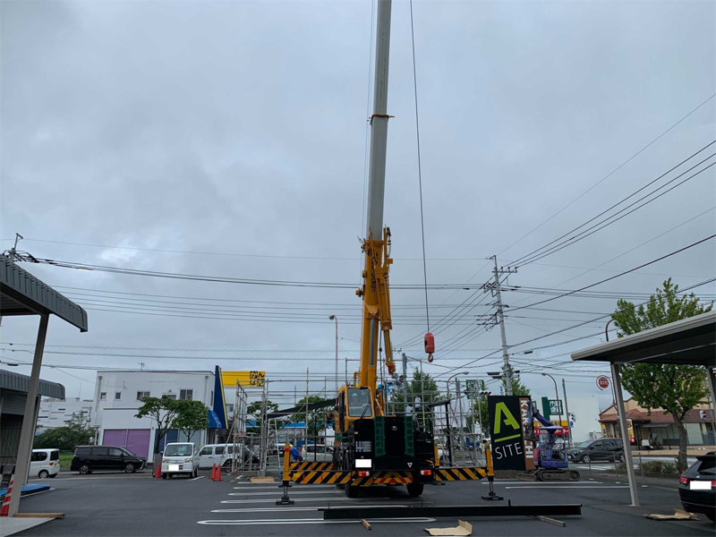 A-SITEにレッカー到着です。いよいよ始まります。安全第一で作業にします。