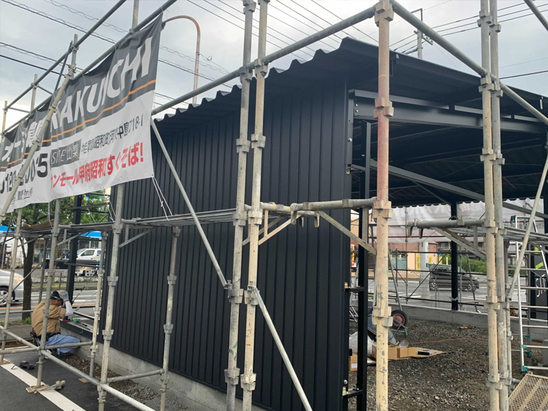 待望の三角屋根。奥行たっぷり11.5m、間口は9m。趣味のスペース&ガレージに。