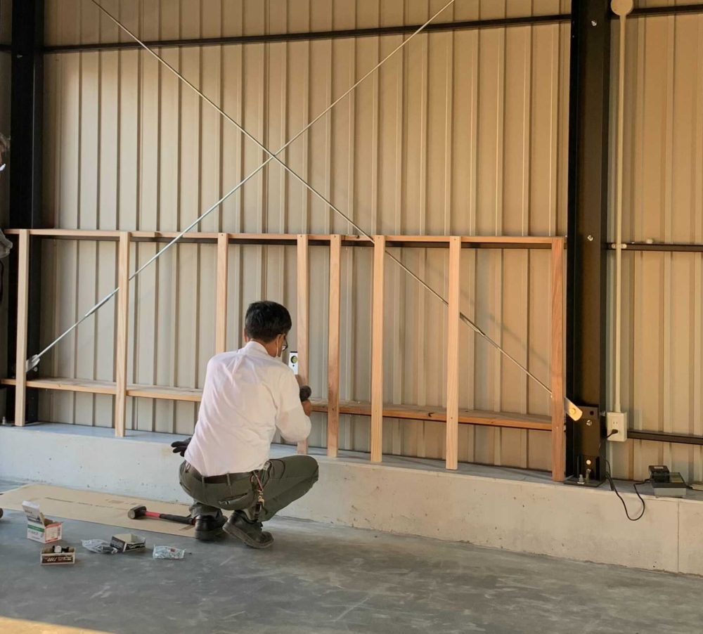ガレージの壁に木の棚を設置するのは、インパクトドライバーがあれば簡単にDIYできてしまいます♪