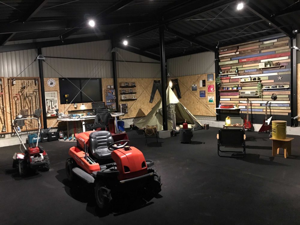 この空間のポイントは、壁を生かした工具棚。HHDの「鉄骨躯体・エスジーエル鋼板・ブレース」の三拍子の空間には工具が似合いますね✨その棚素材や付け方にこだわりあり!そのポイントを見ていきます!