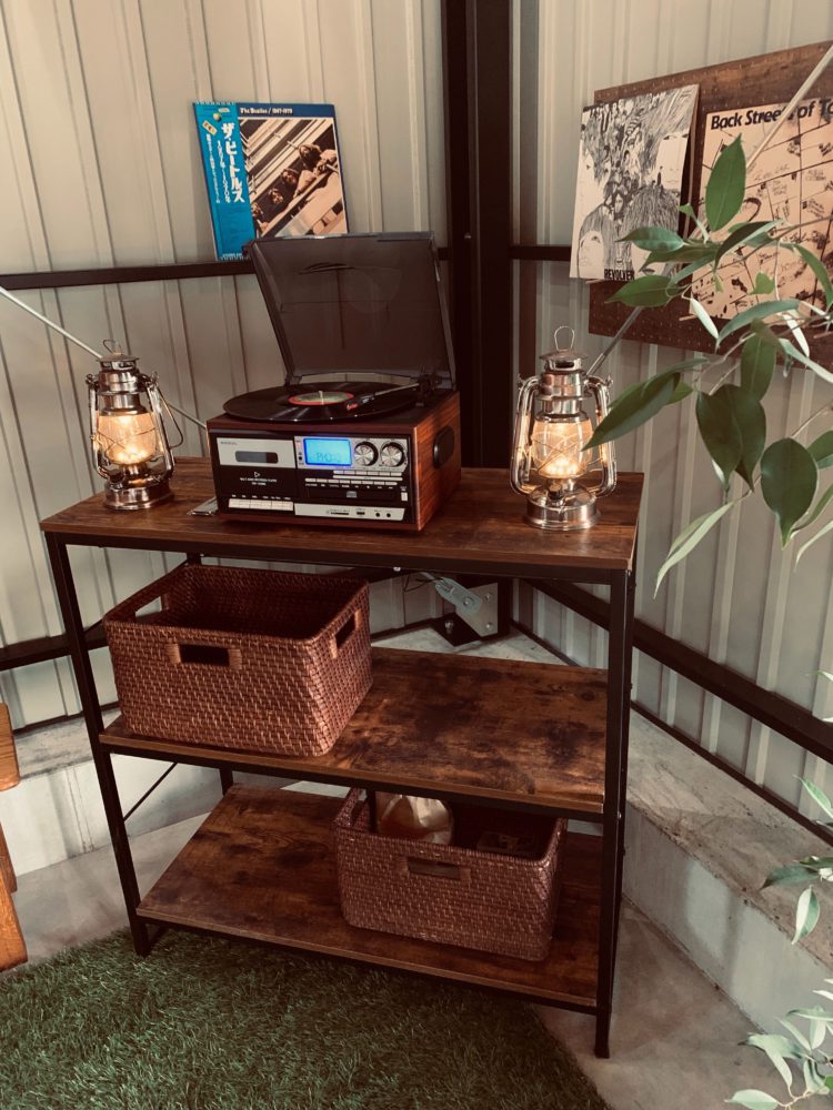 なるほど〜!!ガレージ内の胴縁を活かして、レコードジャケットをオシャレにレイアウト!!