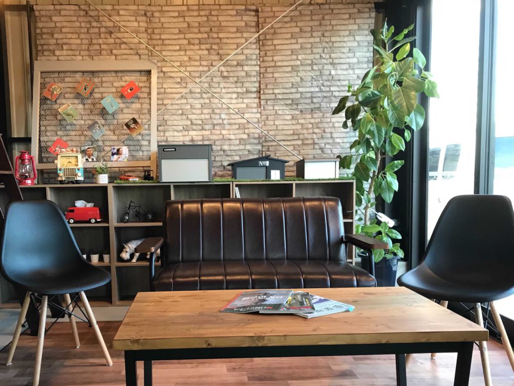 中を覗いてみると、商談スペースは 明るく緑も置き 落ち着いたスペース!!