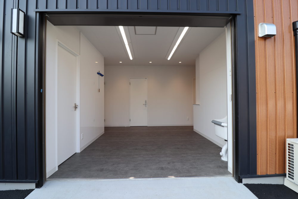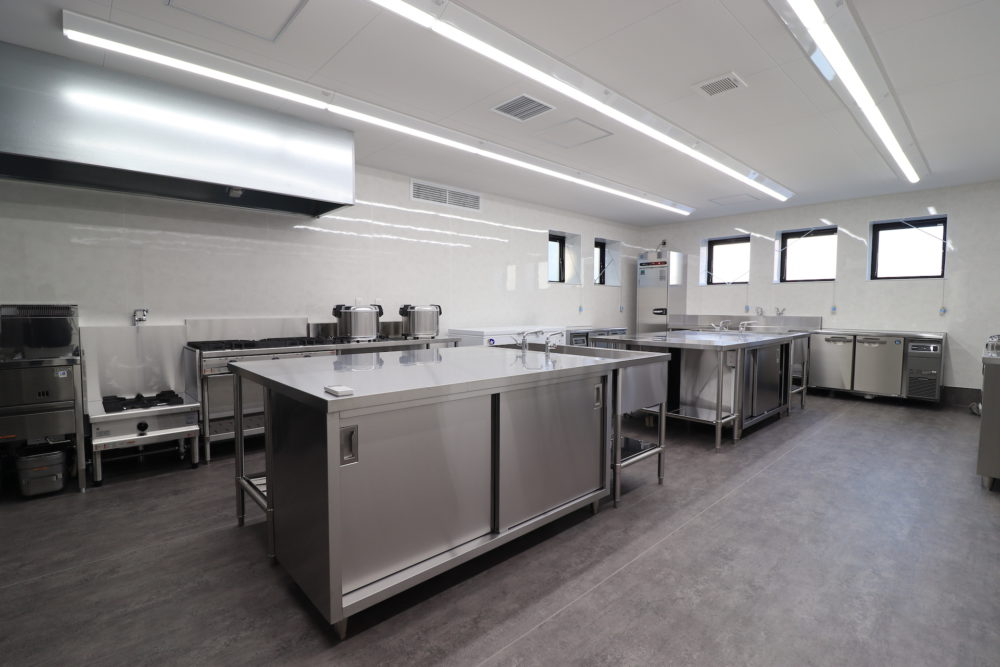 出荷・食品倉庫、お手洗い、更衣室、事務所を設け、広々とした厨房もできました!