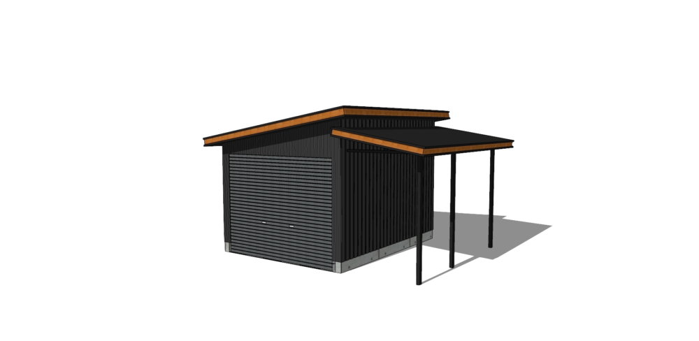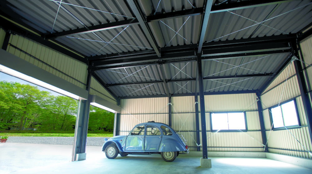 通常のカクイチガレージ同様に、屋根や壁材には通常のガルバリウム鋼板より