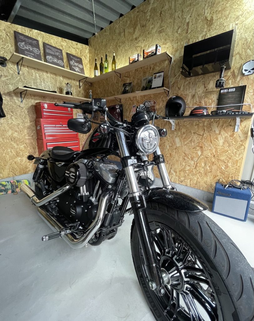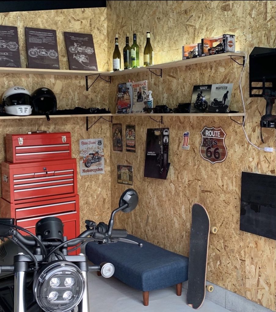工具も置いているので趣味のバイクいじりスペースにも最適!