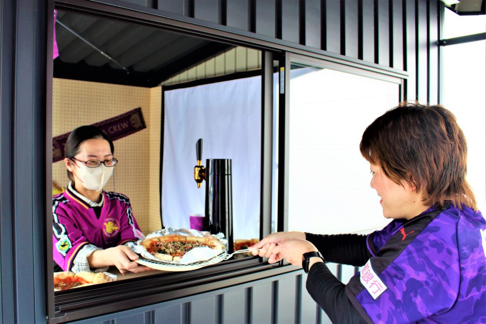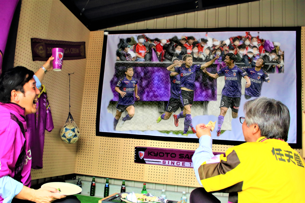 床は人工芝を敷き、サンガスタジアムさながらに再現。