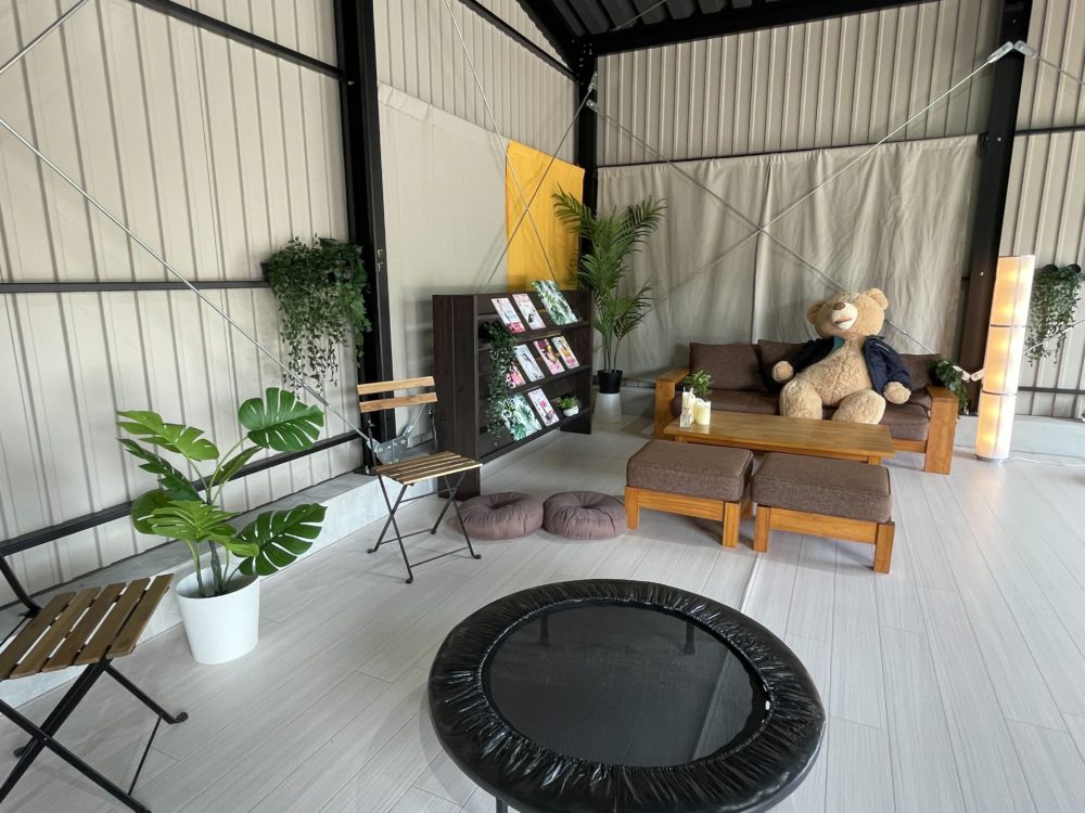 半分外なガレージで外の空気を吸いながら、いい香りといい音楽で、日々の心身の疲れをリセットできる!