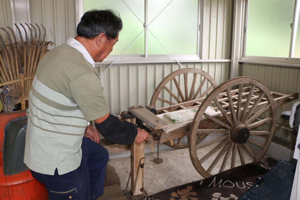 私たちに大八車やお米を測量する機械を見せてくださいました。