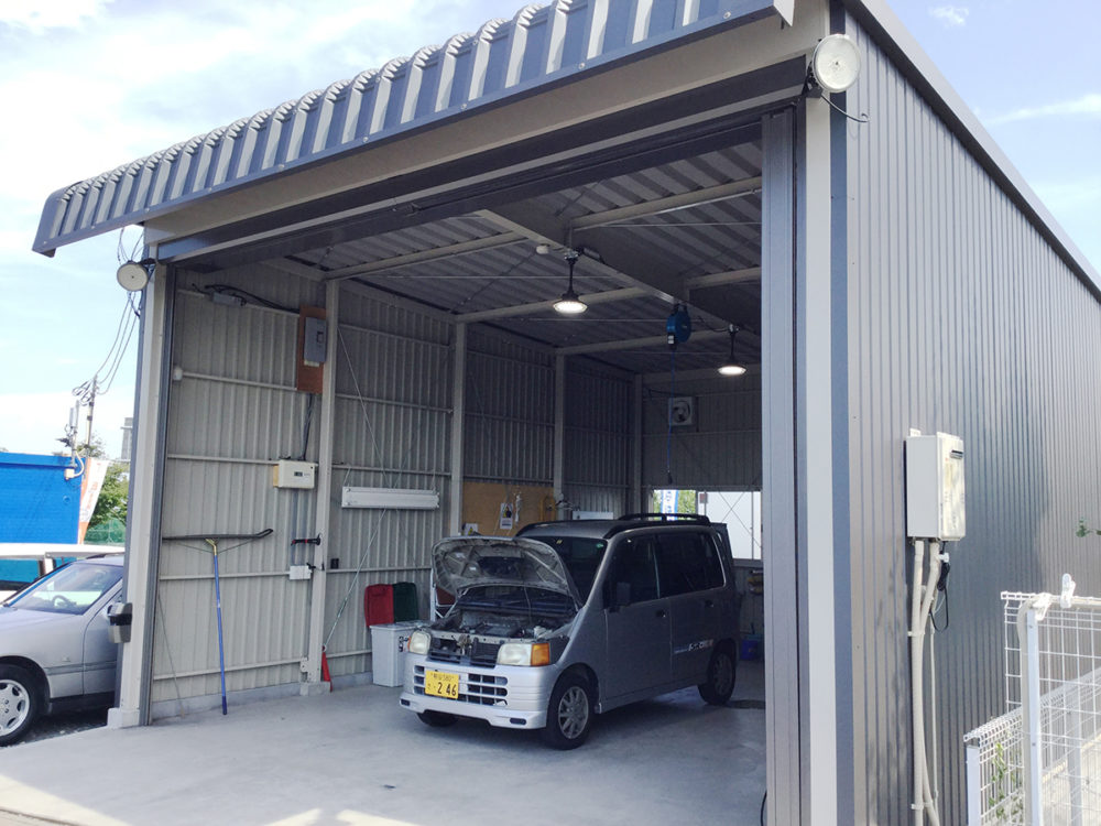 中に柱もないので車の整備やメンテナンス作業にも持って来いなんです。