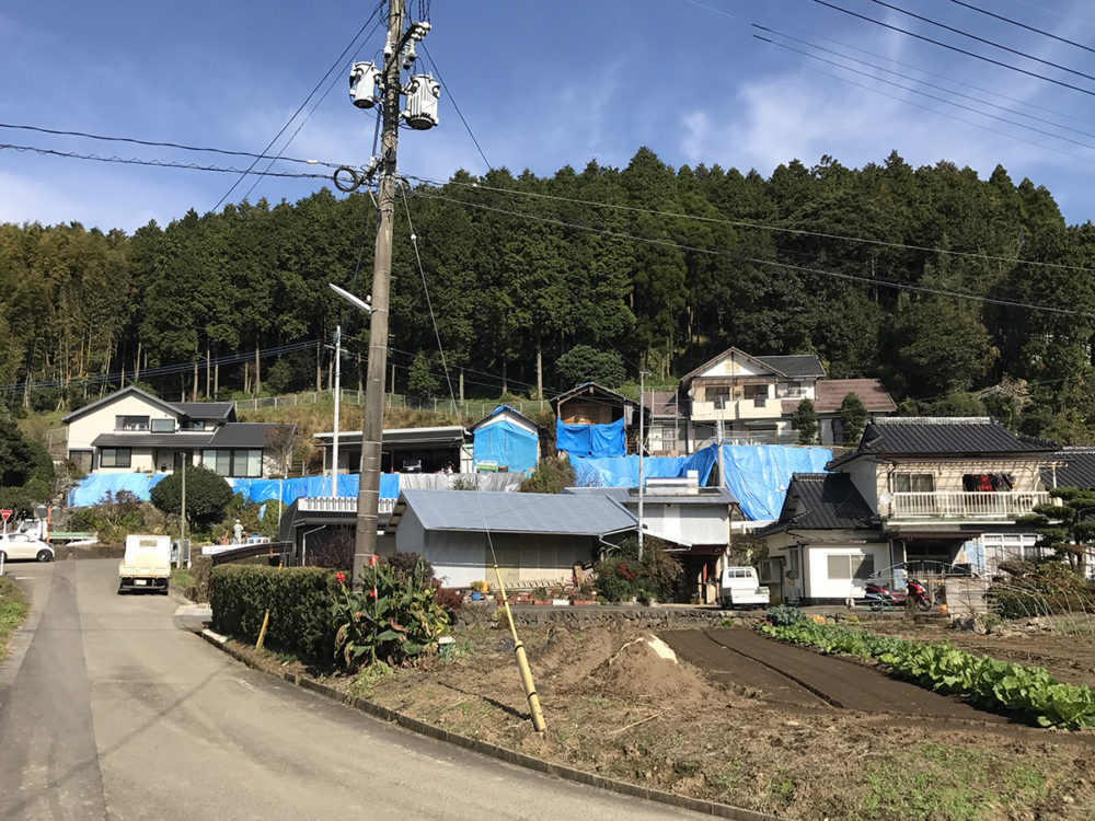 こちら阿蘇郡では、いまだにブルーシートで覆われている無惨な現場もたくさんありました。