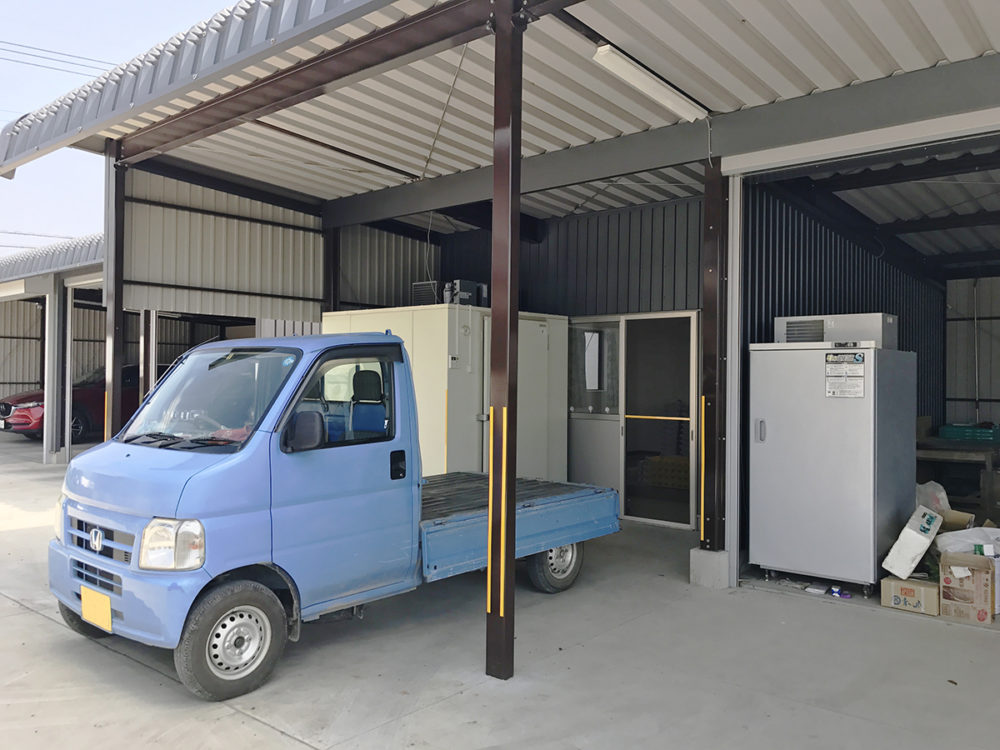 「屋根延長の下に軽トラックを置けるので、出荷作業にとても便利。