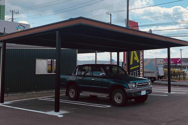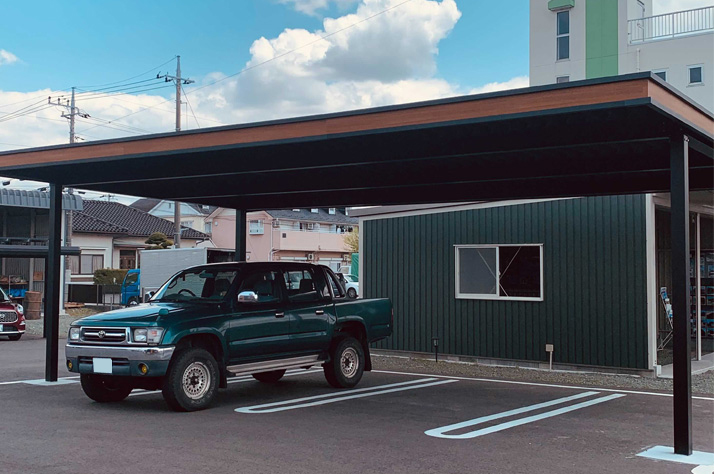 開口部が広いので前面からも横からも車の出し入れがスイスイ!
