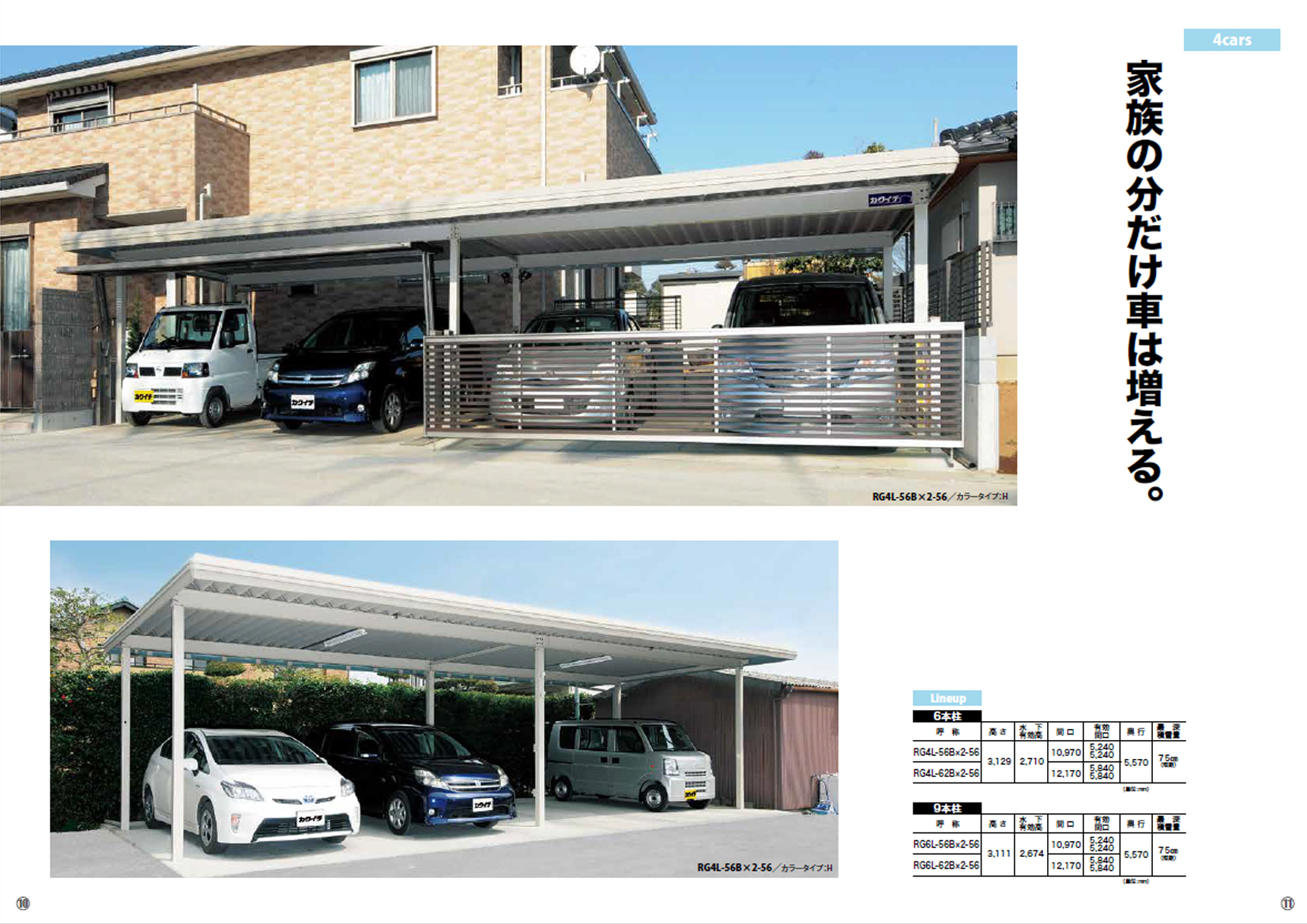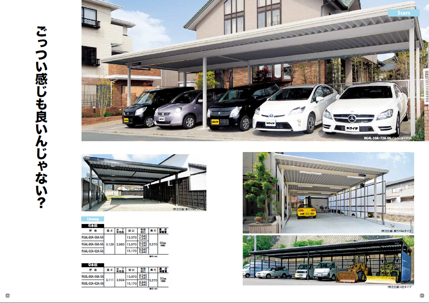 鉄骨構造だから4台用・5台用の幅広い連棟タイプに対応できます。