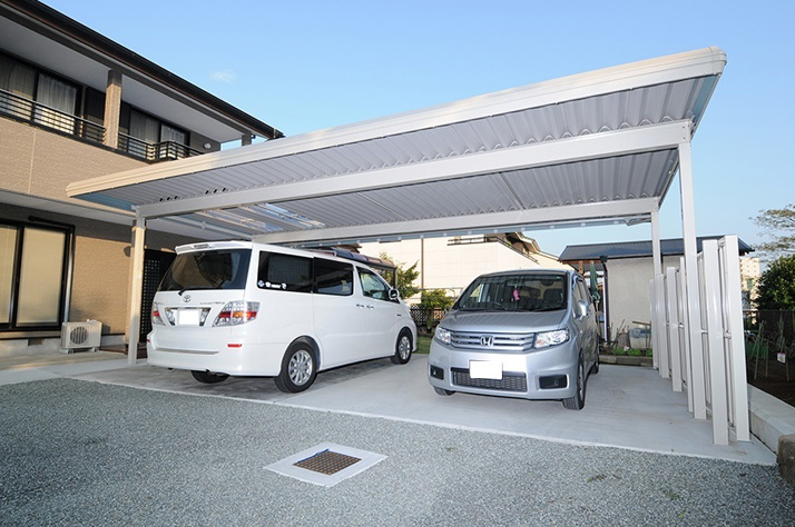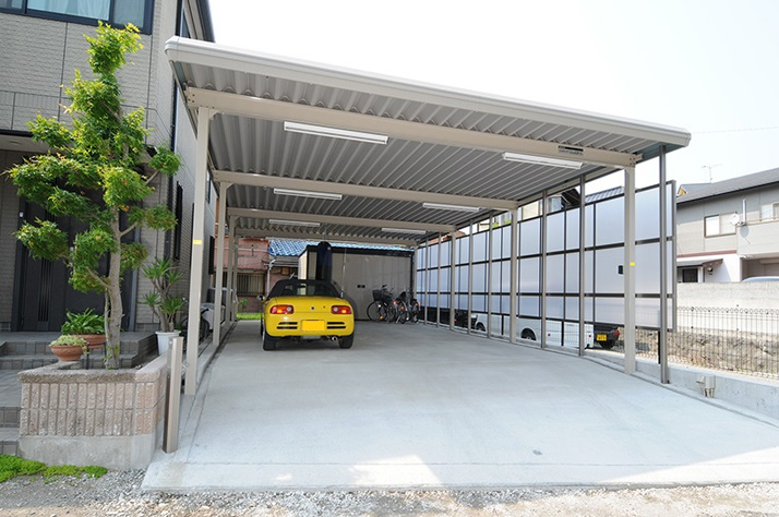 ガレージ専門メーカーが作る鉄骨構造のカーポート。