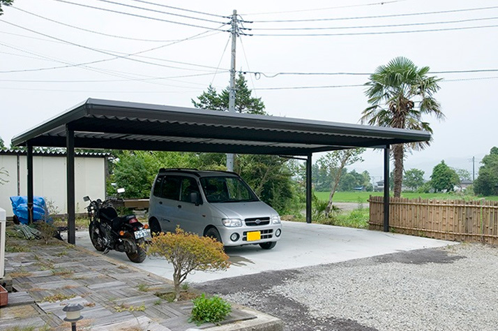 一般的なアルミ製のカーポートに比べ、圧倒的な強度を誇る本格的な鉄骨構造。