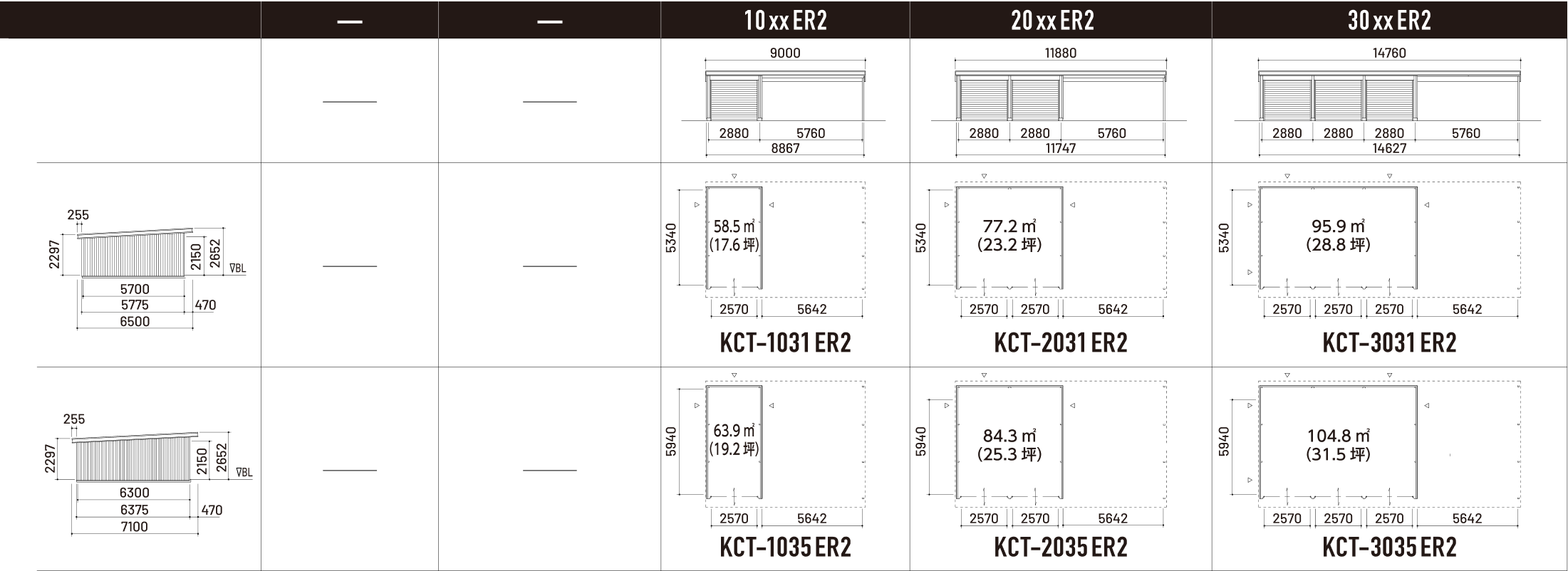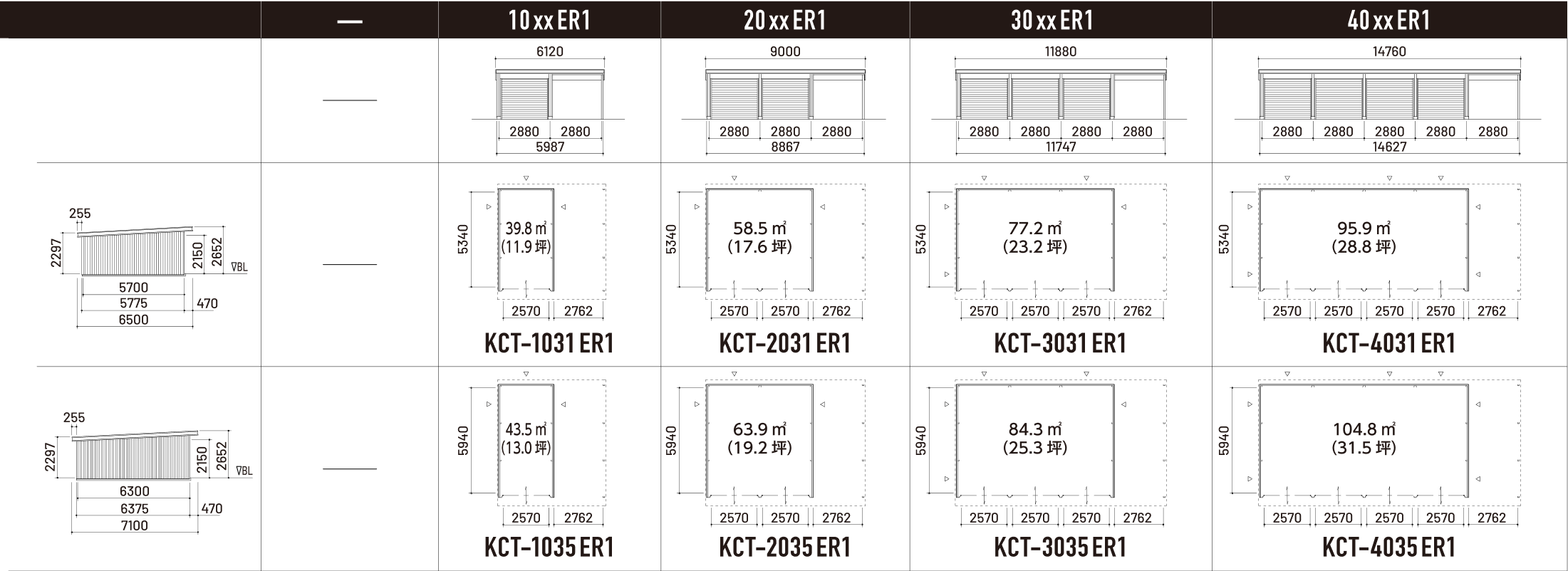 ※下屋が左側の場合、ERがELとなります。※㎡・坪数は、建物の屋根外々寸法で表記しています。