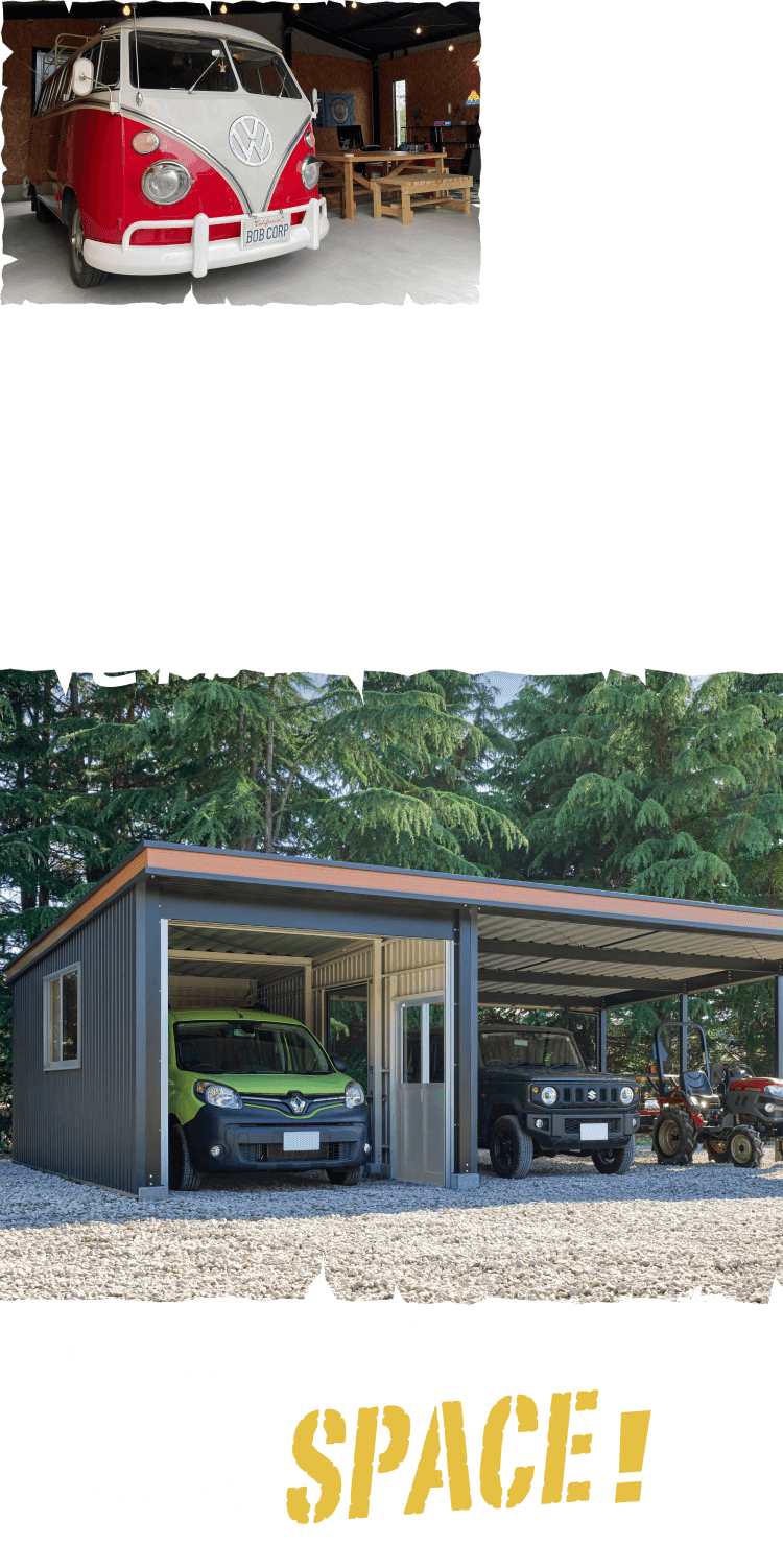 お客様からの要望の多かったガレージ・カーポート一体型の商品が満を持して登場!幅広の駐車スペースは最高の使いやすさ!