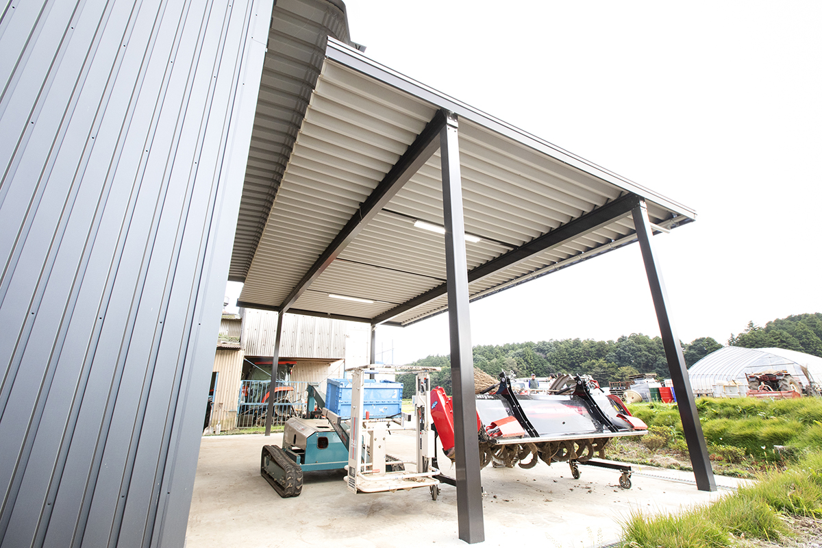 何と言ってもこの広い下屋が魅力です。 肥料の配合や、雨の日の作業にも便利に使っています。