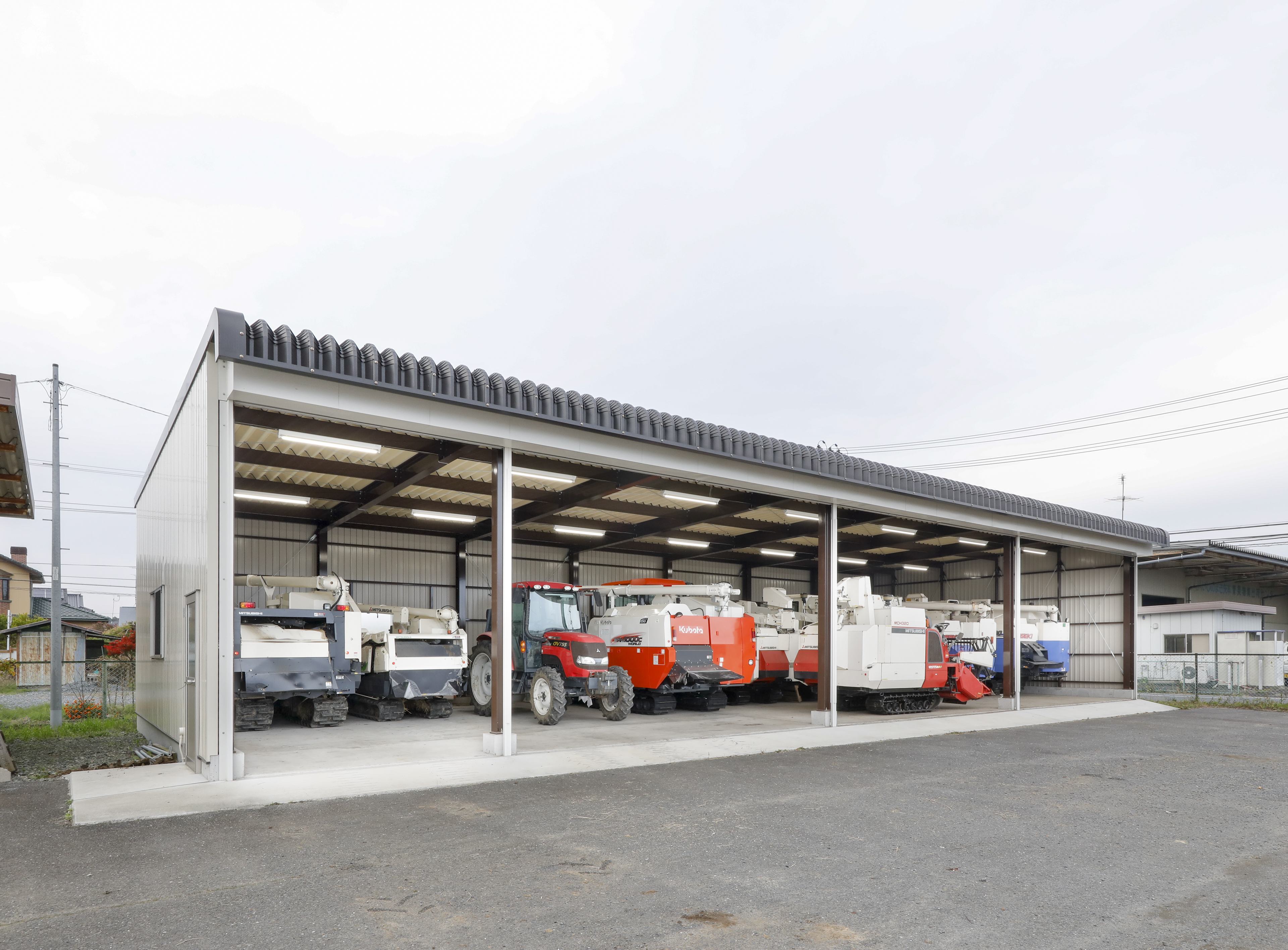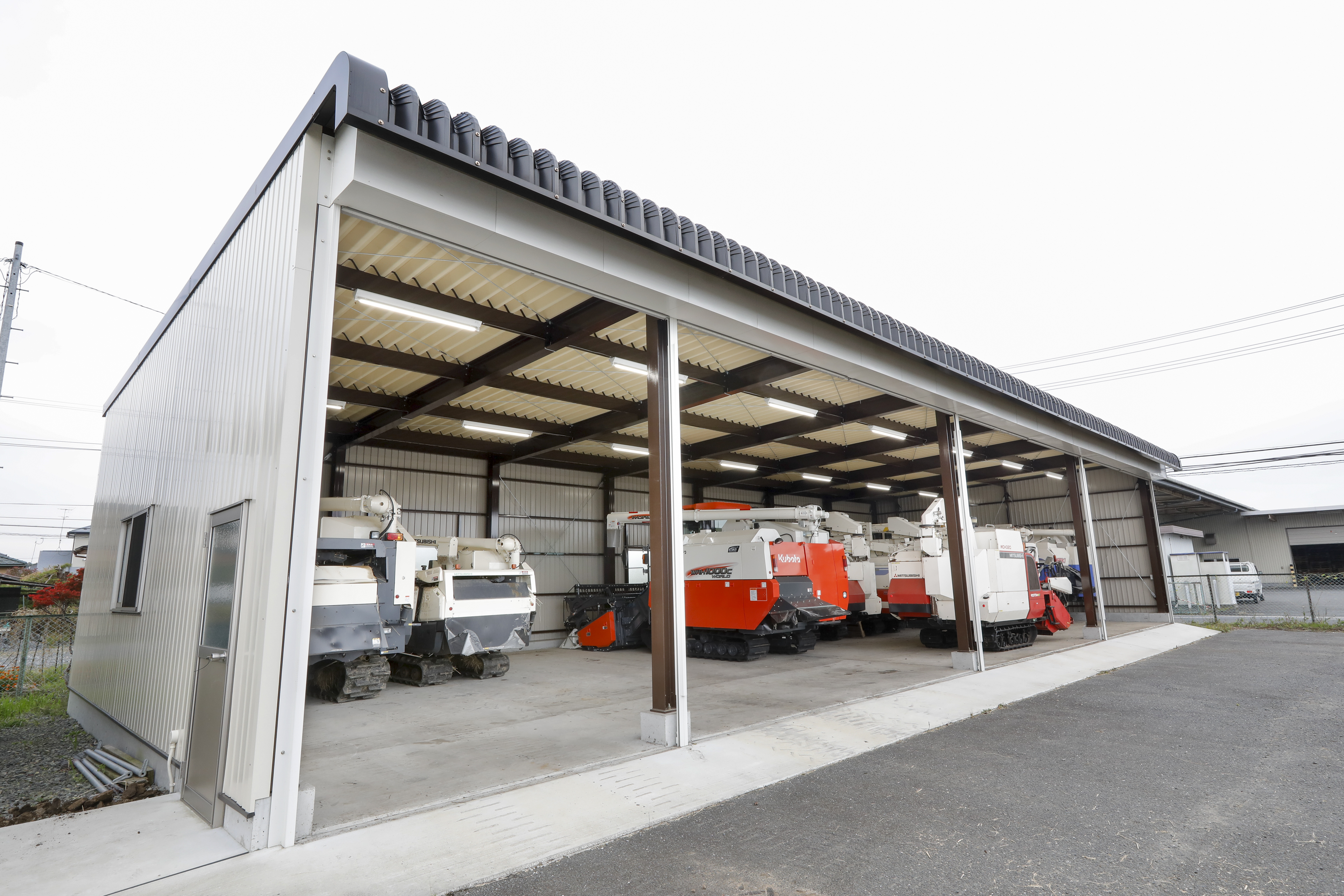 農機具の格納用としてお使いいただいている倉庫です 幅が21Mあるので迫力がありますね