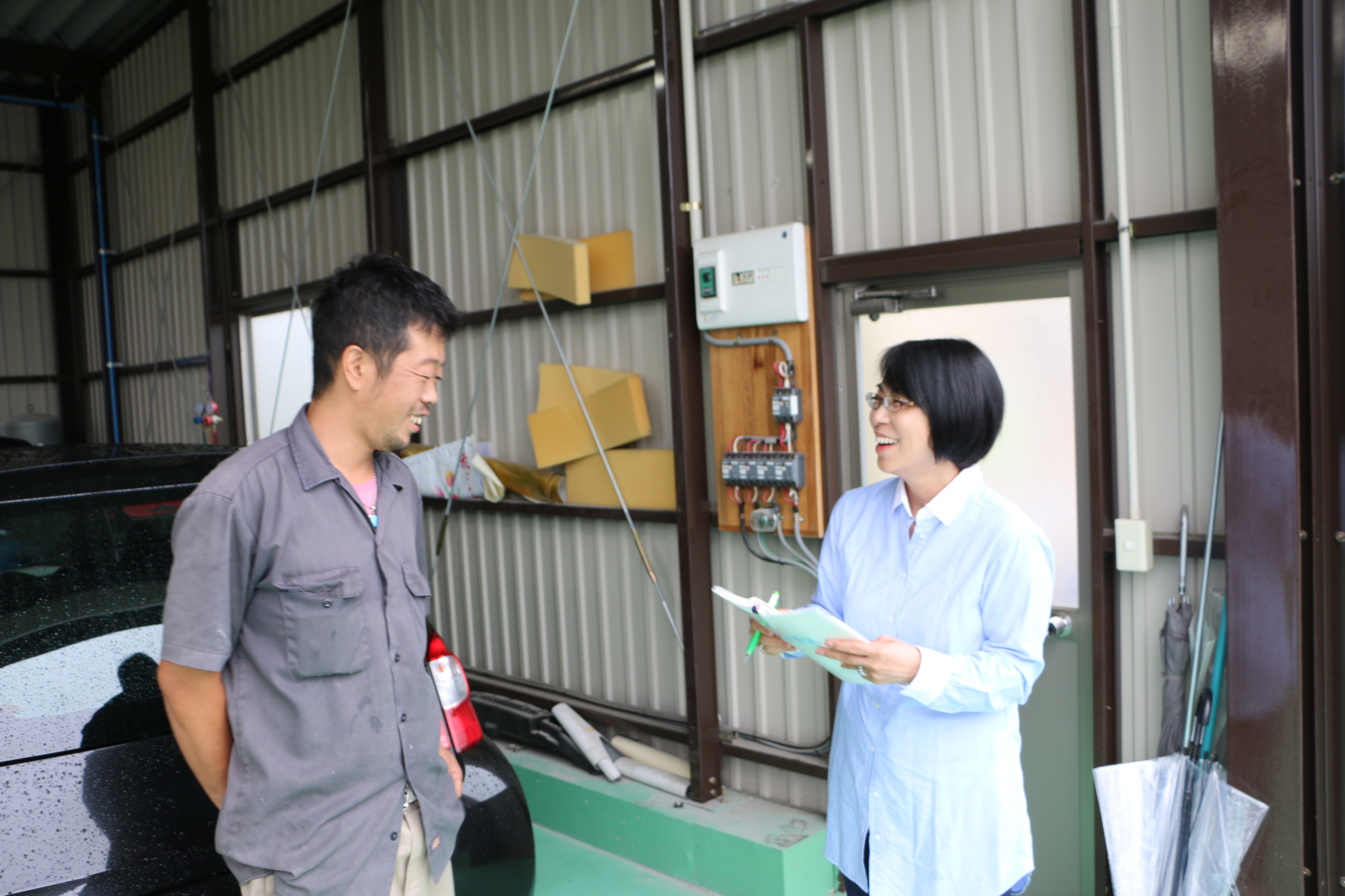 取材中にお客様が次々とお見えになり、人気の塗装専門の修理工場です。