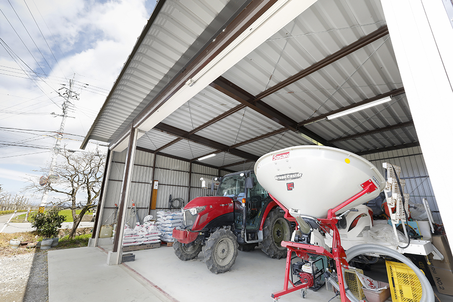 この辺は風が強く、昨年使っていたパイプハウスが壊れてしまったのがきっかけで倉庫を探していたところ、ヤンマーの展示会で見て、ピピッと来ました。