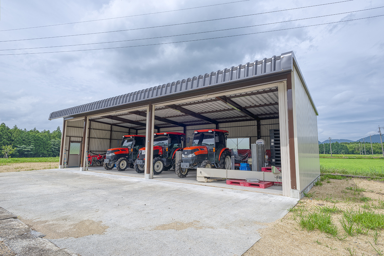 7台もあるトラクターをあちこち収納するのが面倒だったので、近い場所に倉庫がまとめて建てられて使い勝手がとても良くなったそうです。