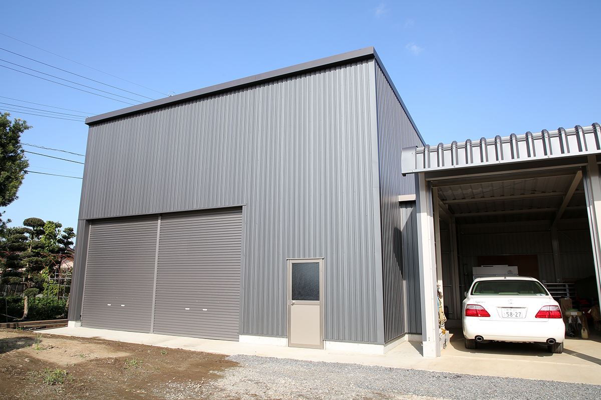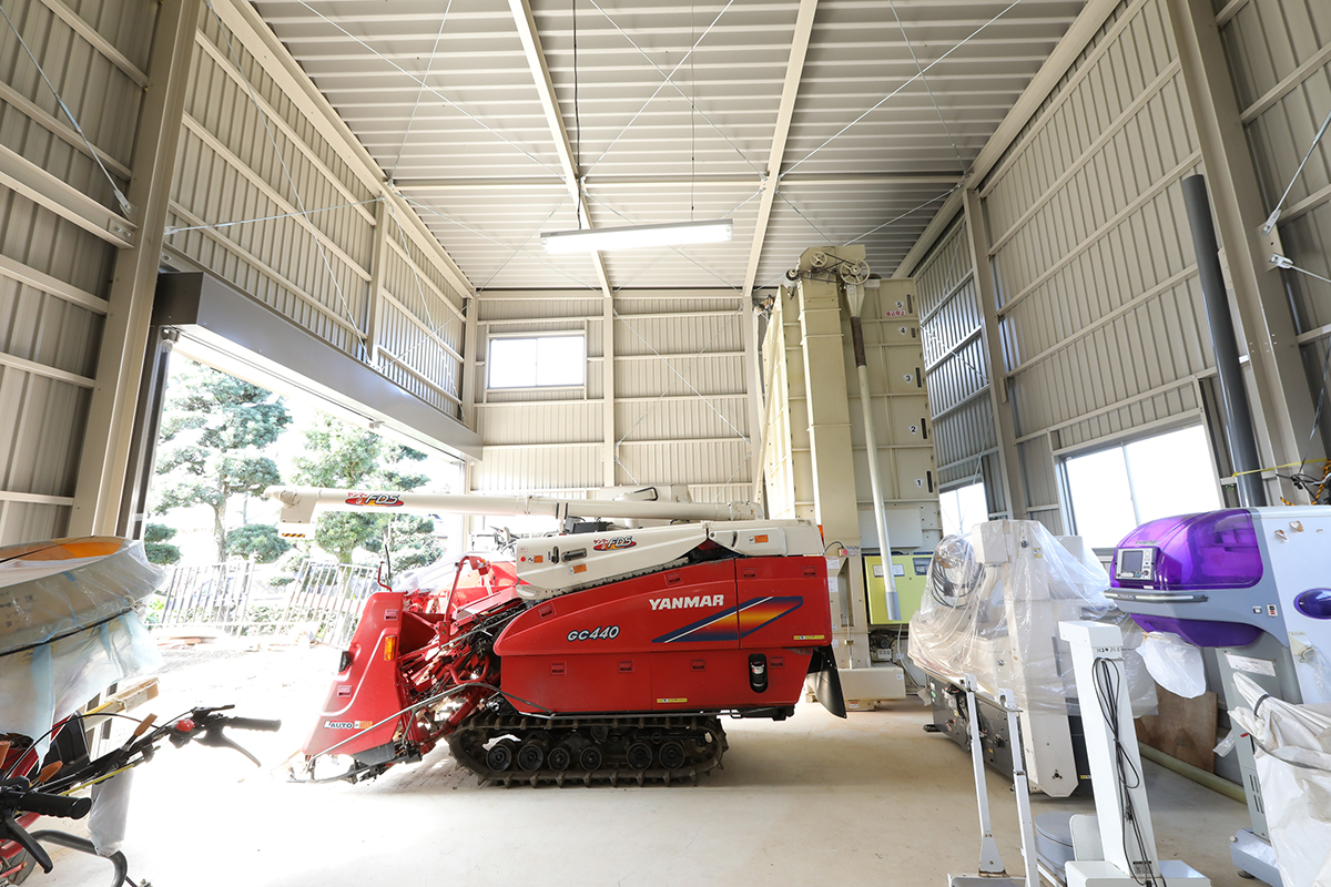乾燥機用に高さ6mのものも併設して、大部分の農機具が収納できました。
