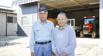 品評会に出品する菊の美しさに負けない位、笑顔の素晴らしいオーナー様ご夫婦。60年使っていた木造2階建ての納屋を「広スペースハウス」で建替えました。