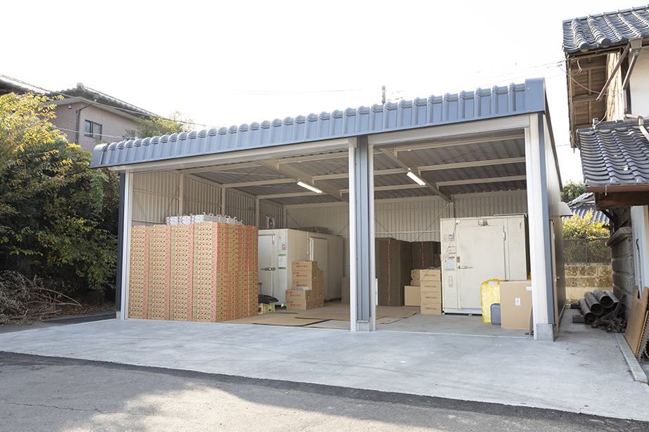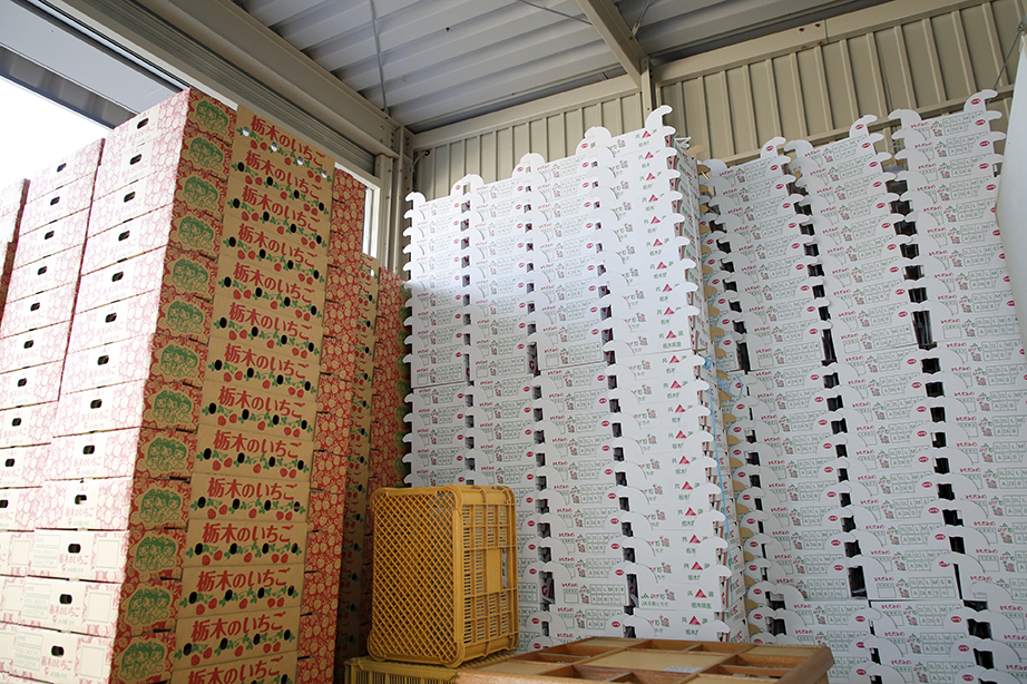 冷蔵庫を置きイチゴの一時保管や段ボール等資材を置いています。