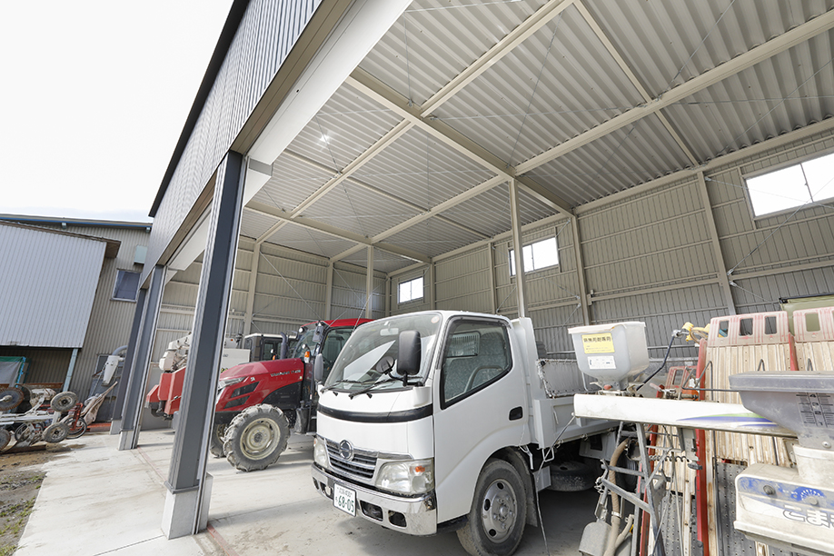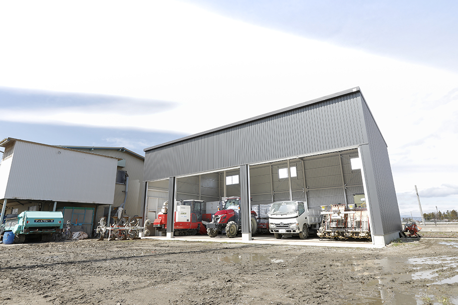 55石の乾燥機や、トラクターは9台、コンバイン4台と、収納はいくらあっても足りません。