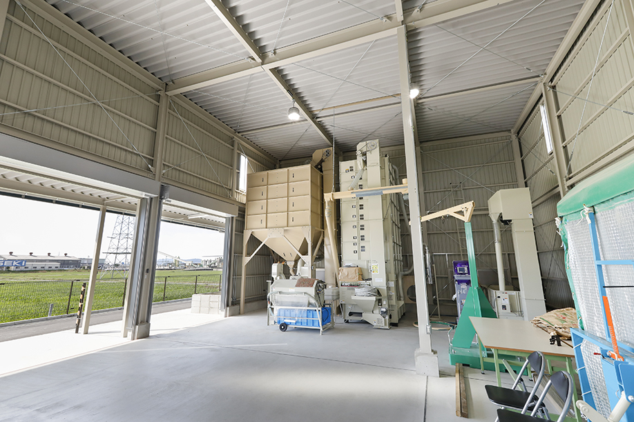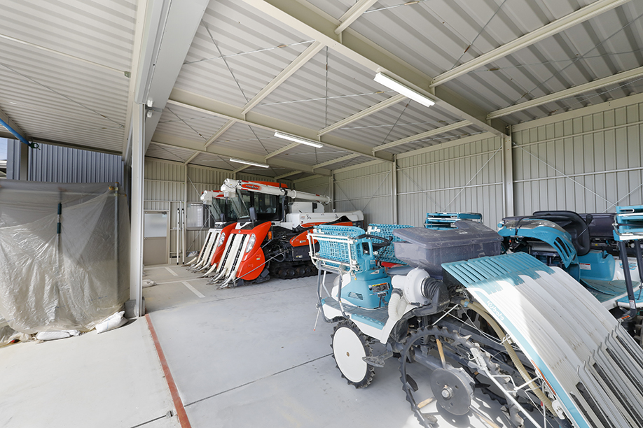 乾燥機や農機具だけでなく、資材や作物の一時保管など多角的に便利に使っています。