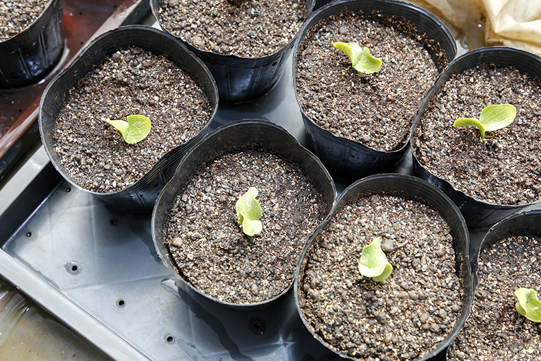 屋根延長の下では、野菜の苗を育てたりして有効利用しています。