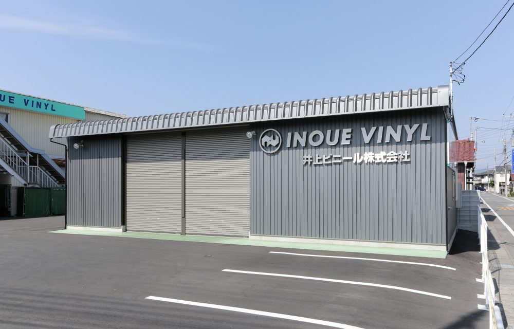 倉庫の色がとても気に入ったので、この雰囲気に合わせて近所の看板屋さんで看板をつけました。