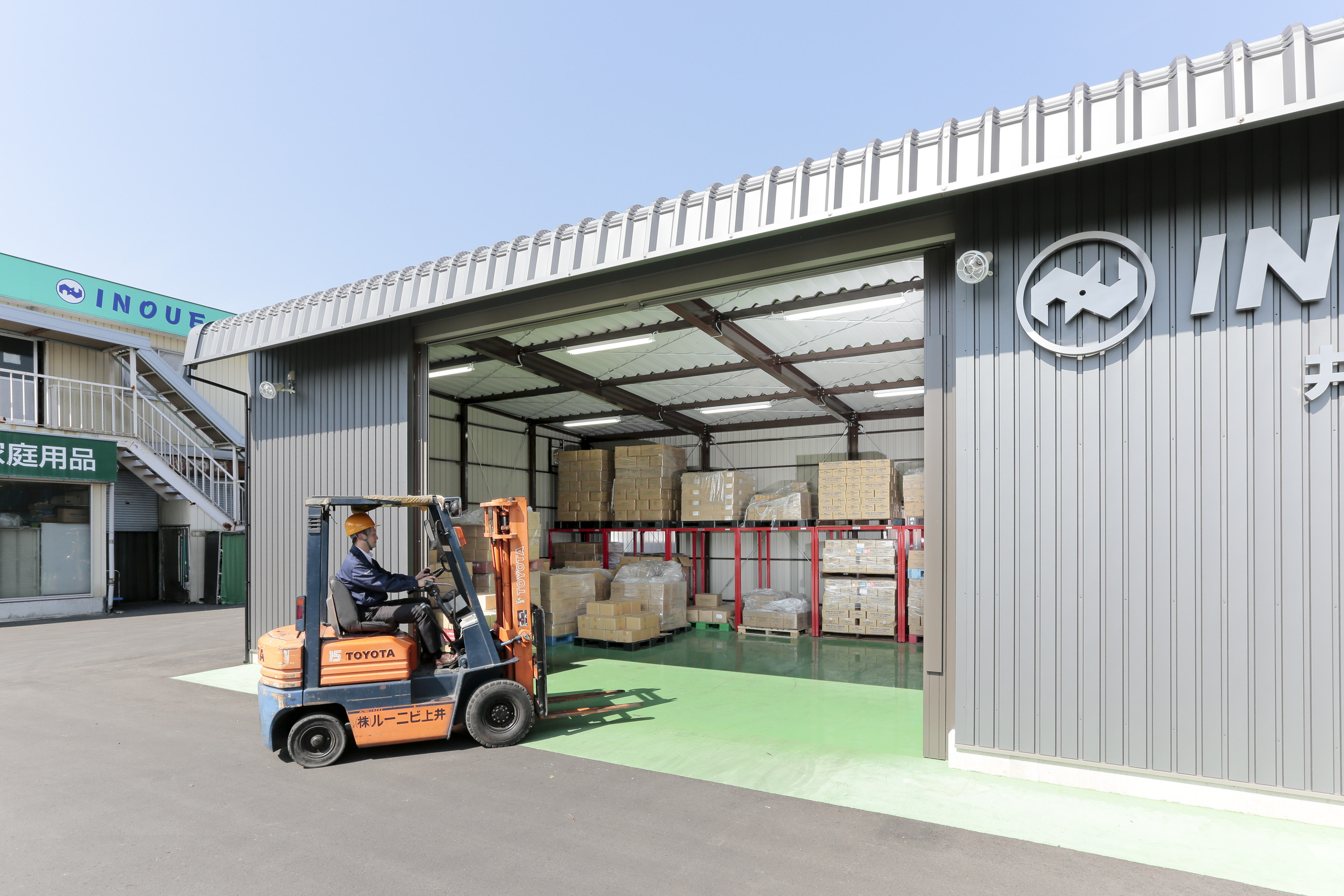 フォークリフトを使い、倉庫内で作業をするので、まずは十分な高さと間口が必要でした。