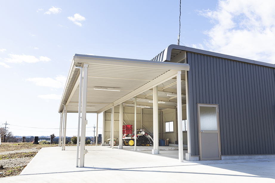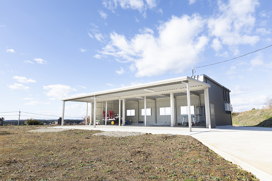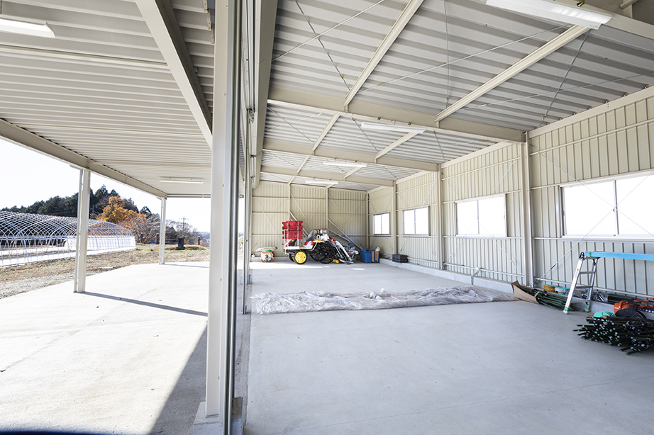 下屋をつけて農機具が出来るだけ収納できるようにしました。