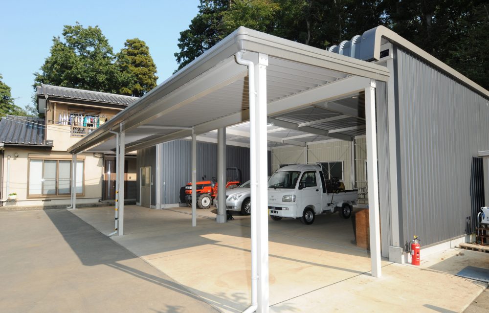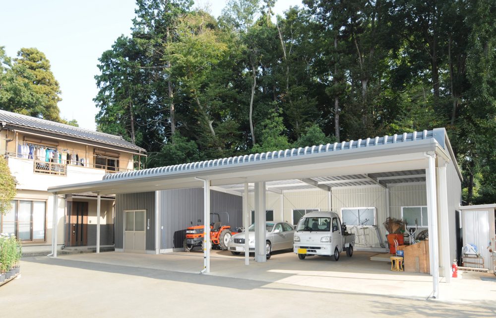 屋根の下に軽トラックを置いたり、作業スペースとしても大変便利との事。