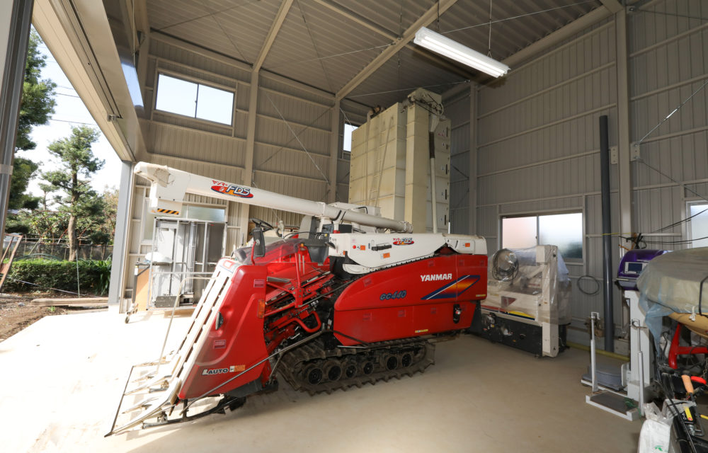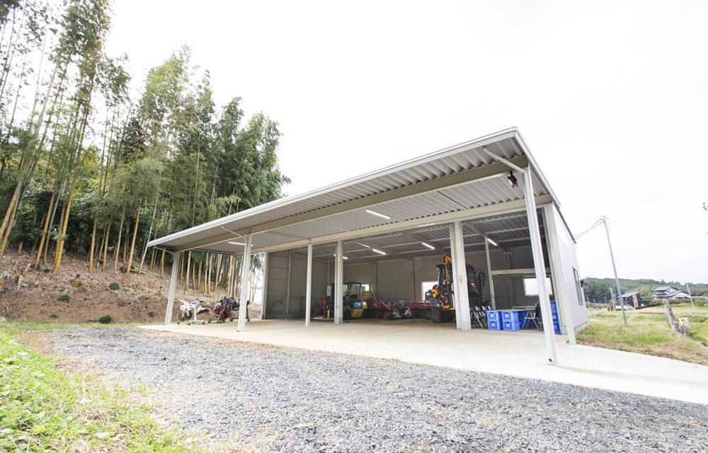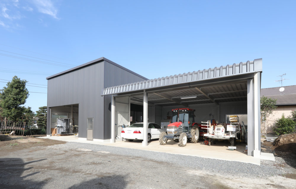 乾燥機用に高さ6mのものも併設して、大部分の農機具が収納できました。